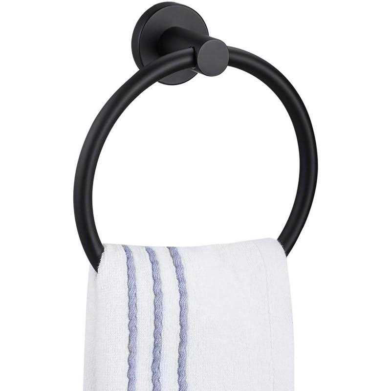 Pynsseu Matte Black Towel Ring for Bathroom 1 Pack Kitchen Bath Towel Holder Hangers Wall Mount Heavy Duty Storage Stainless Steel