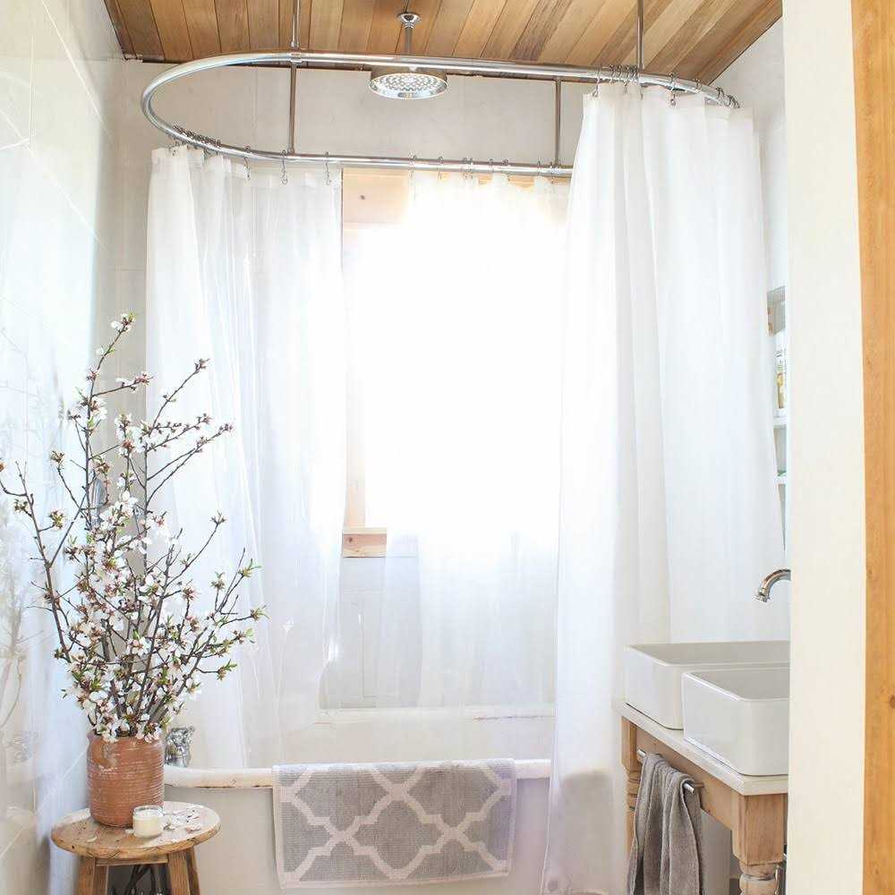 Reisen White Ruffle Shower Curtain Fabric/Cloth Farmhouse Bathroom Sheer Shower Curtain