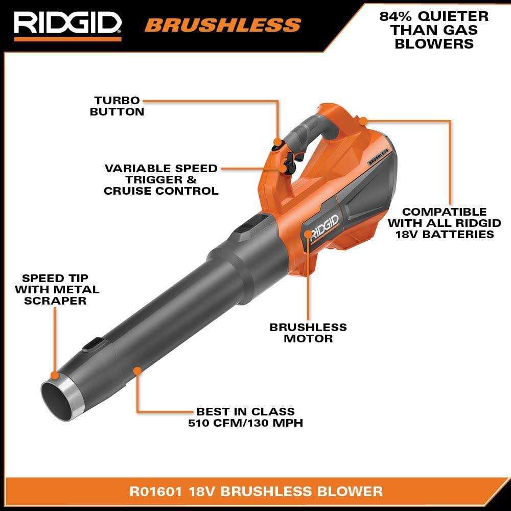 RIDGID 18V Brushless 130 MPH 510 CFM Cordless Battery Leaf Blower