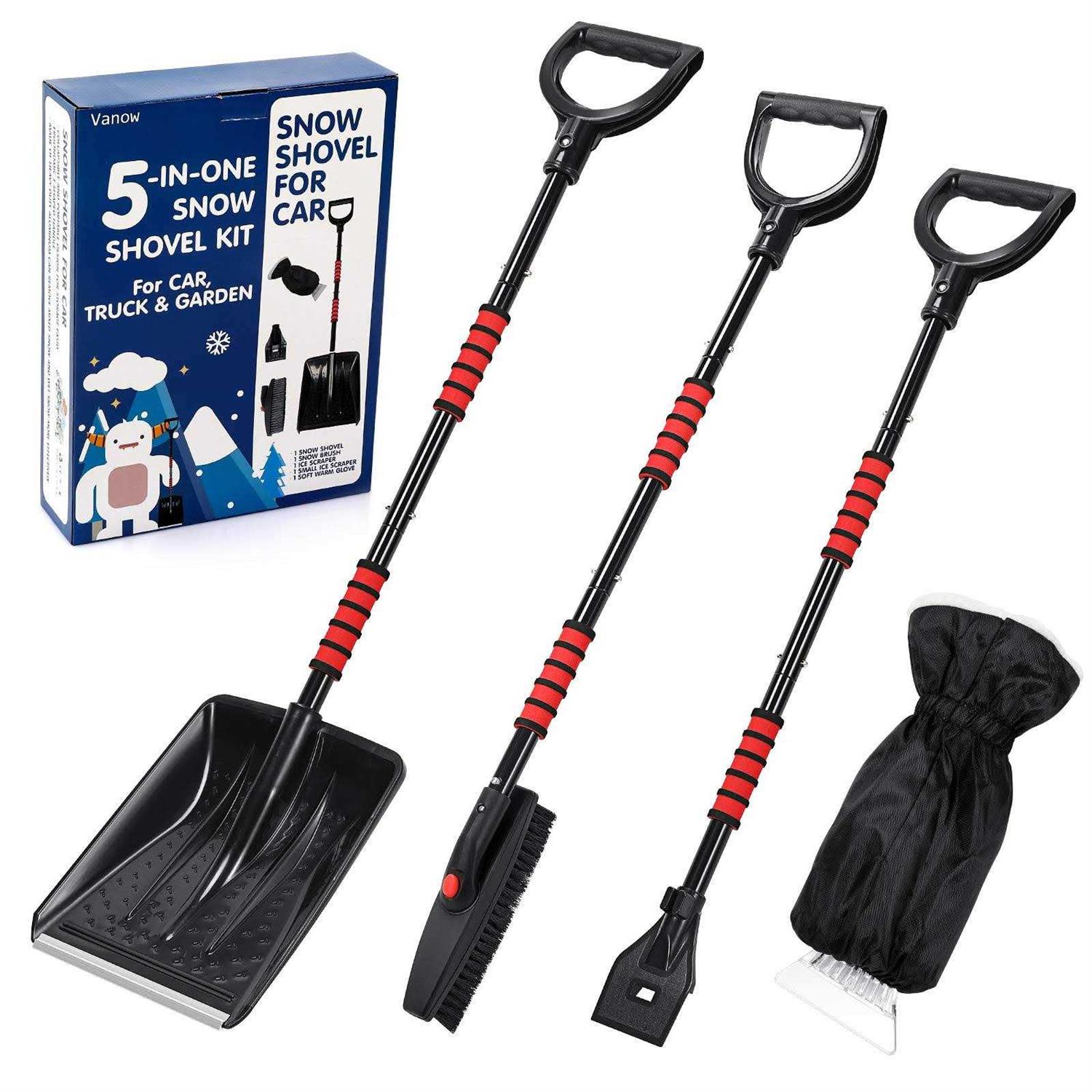 Snow Shovel Kit Removal Tools 5 in 1 Foldable Car Snow Shovel + Snow Brush + Ice Scraper + Glove + Mini Ice Scraper