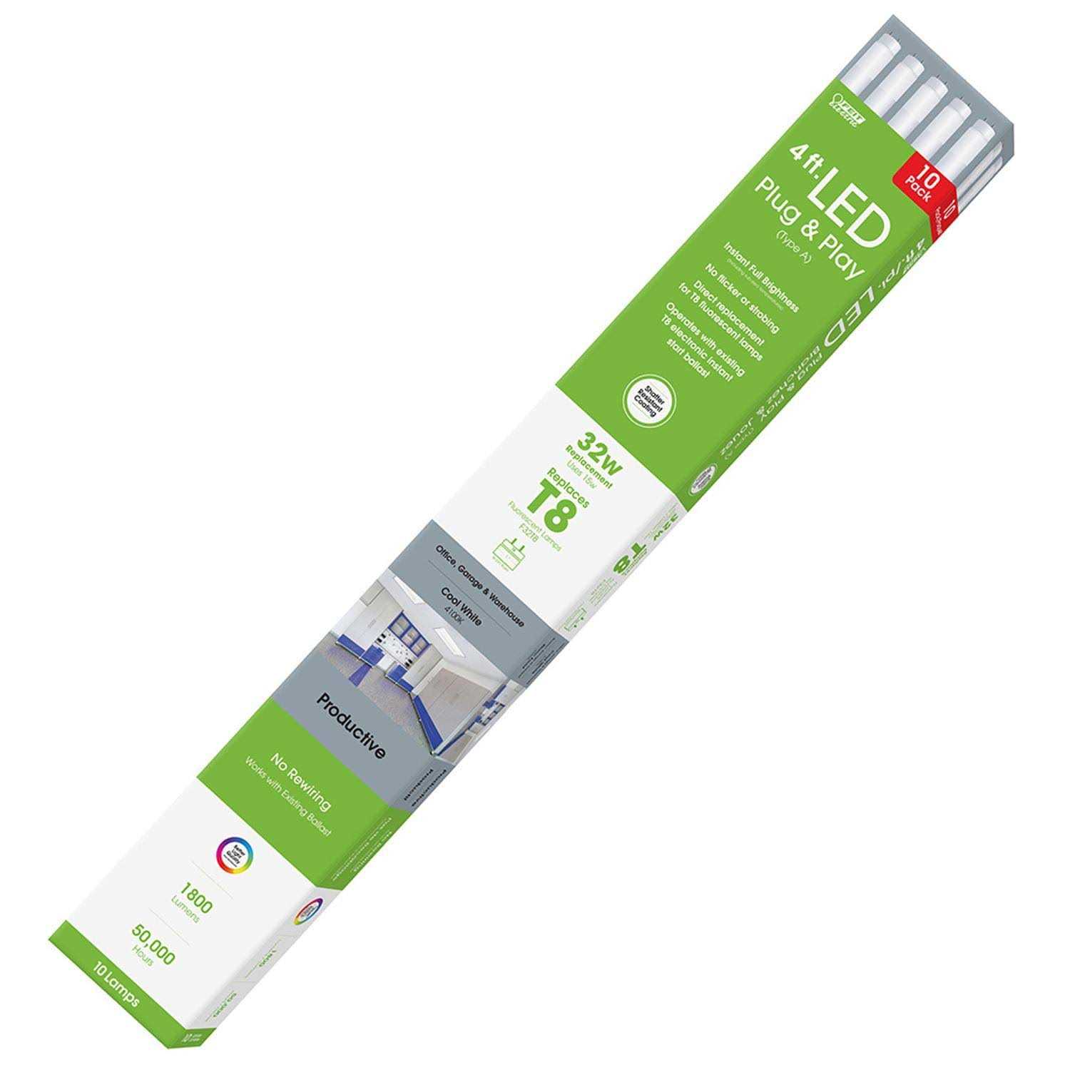 Feit Electric Bulb LED T8 4818W 10PK T848/840/LEDG2/10