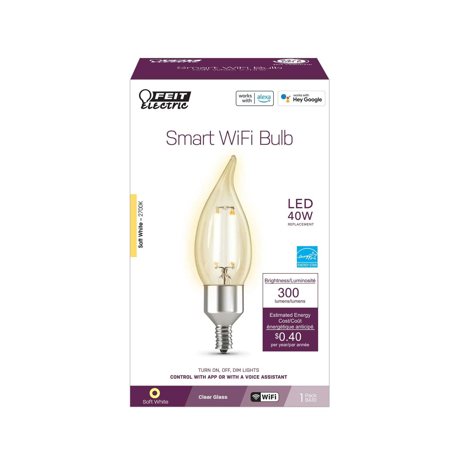 Feit Electric Flame Tip E12 LED Smart Bulb Soft White 40 Wat