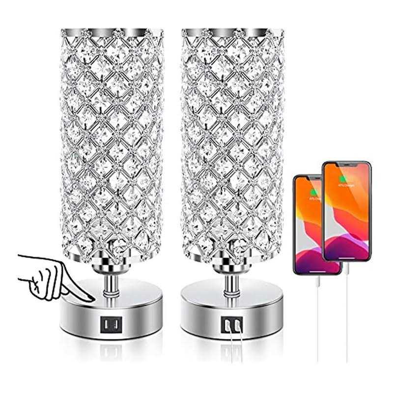 ganiude touch control crystal table lamps set of 2 nightstand lamps with usb c+a charging ports