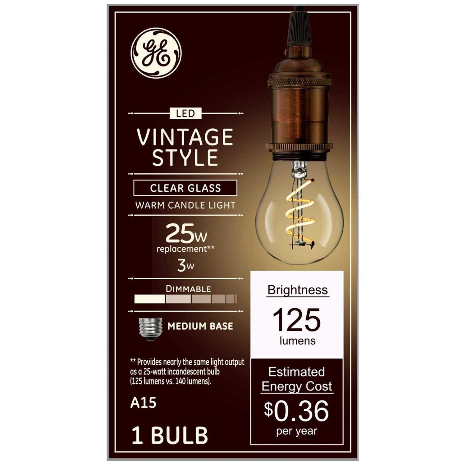 GE Vintage Style A15 E26 LED Bulb Warm Candle Light 25 Watt Equivalence 1 pk