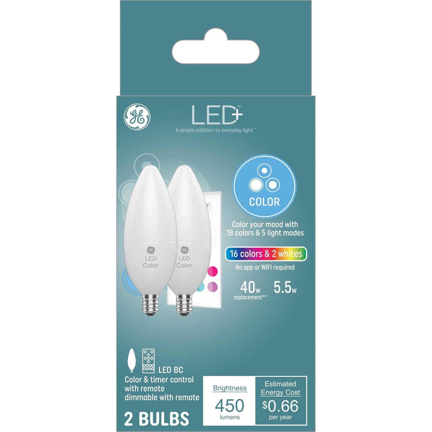 general electric Ge 2pk Remote Included LED Decorative Color Changing Light Bulbs