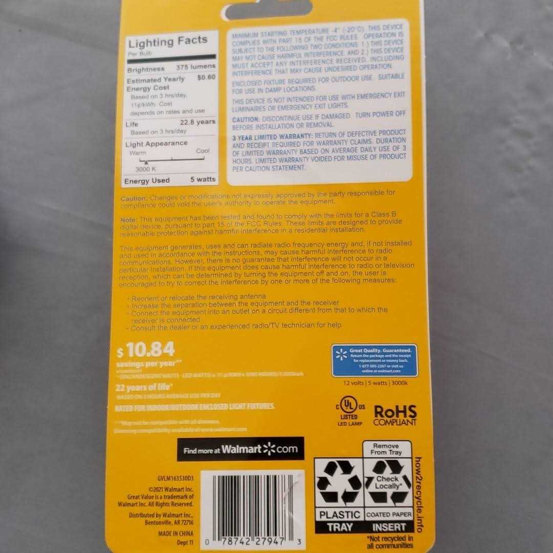 Great Value LED Light Bulb Mr16 Lamp Gu10 Base