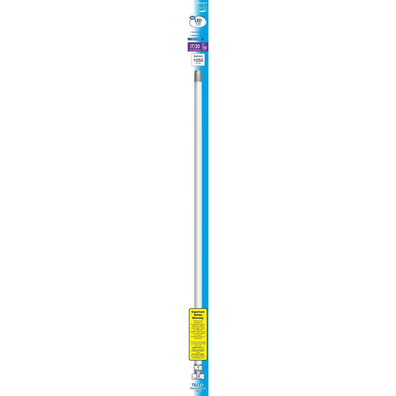 Great Value LED Tube 10 Watts T8/T12 Replacement Lamp G13 Base