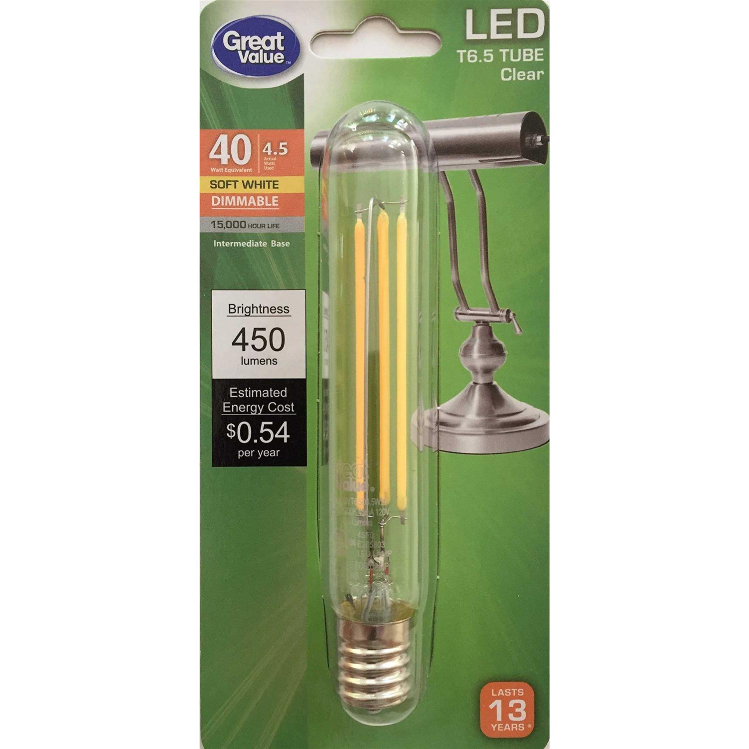 Great Value LED T6.5 Tubular Bulb 4.5-Watt E17 Base Dimmable Soft White 1PK