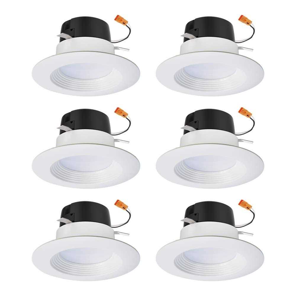 Halo 4 inch Recessed LED Can Light Retrofit Ceiling & Shower Downlight 3000K -Baffle White Trim – 6 Pack
