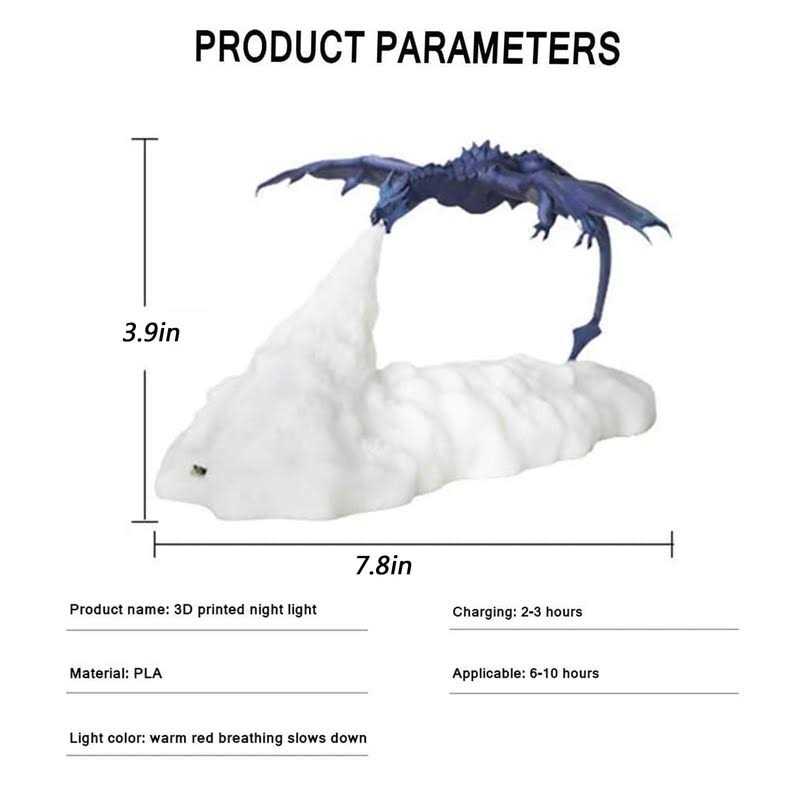 HGomx Fire Dragon Lamp Light, 3D Printed Night Light LED Moon Light Gift for Boys and Girls Bedroom Kids Room with USB Rechargeable