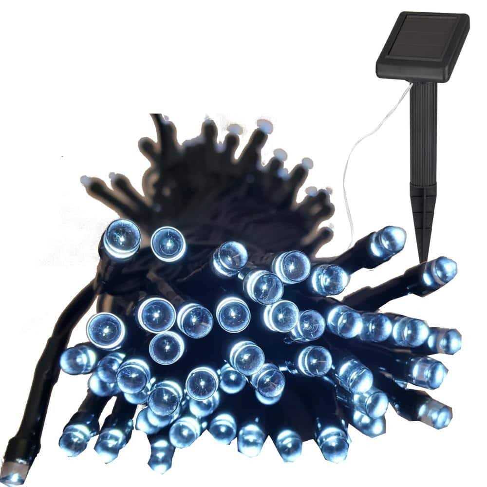 HunnyKome Solar Lighting Festive Outdoor 36 ft. Solar Platinum Cool White Mini Bulb LED String Light with on or Flashing Settings