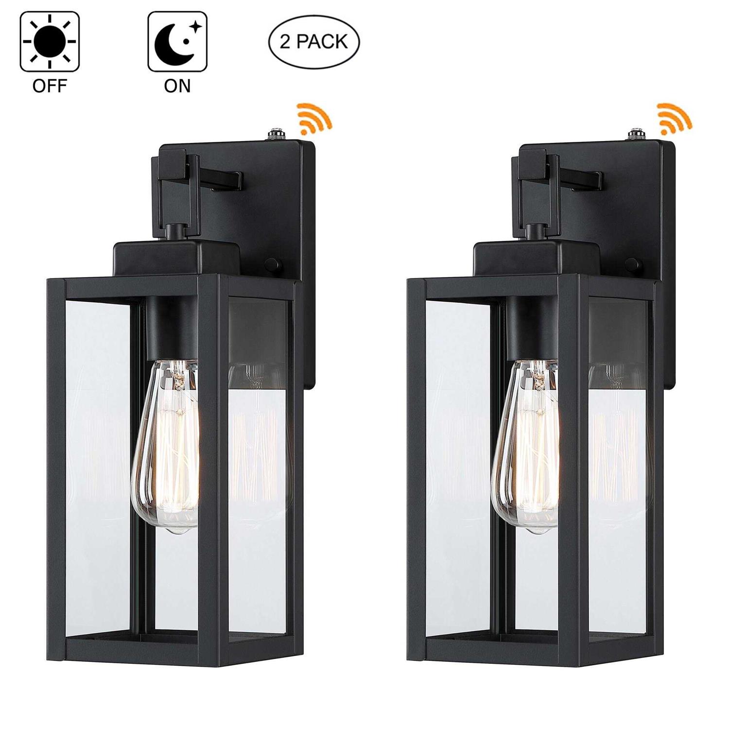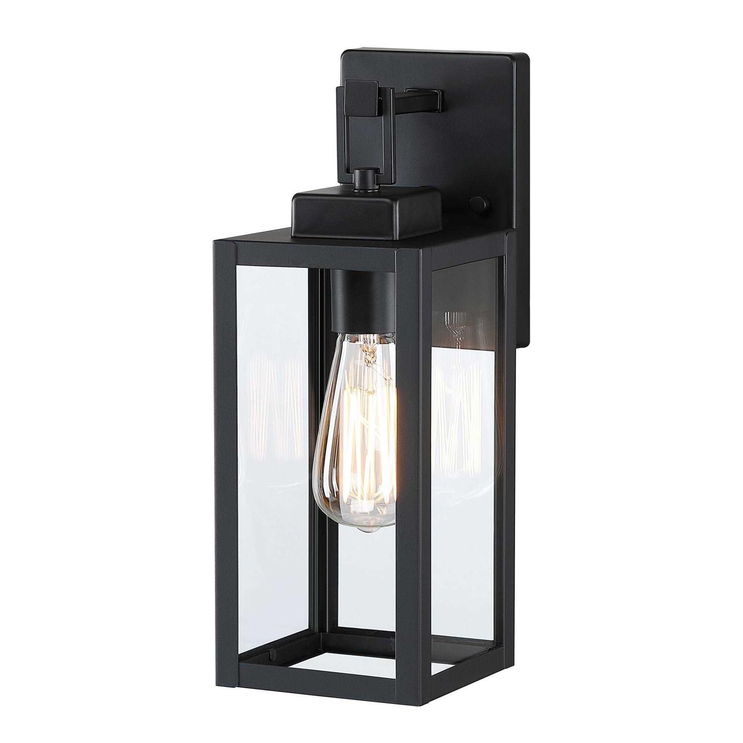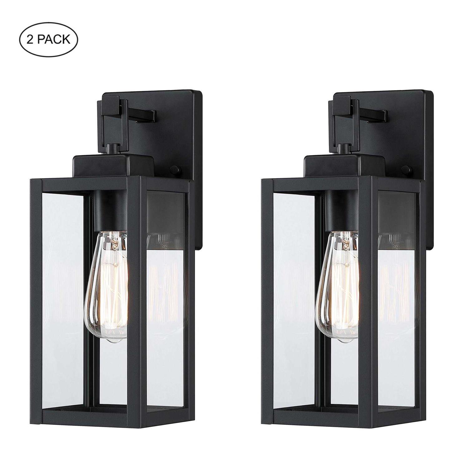 Hukoro 2-pack 1-Light 13.70 in. Matte Black Outdoor Wall Lantern with Clear Glass Shade