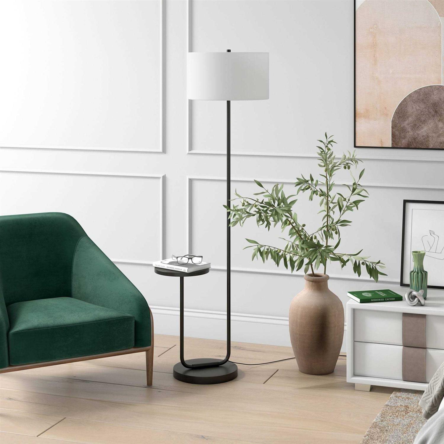 Hudson&Canal Jacinta Tray Table Floor Lamp with Fabric Shade FL1568
