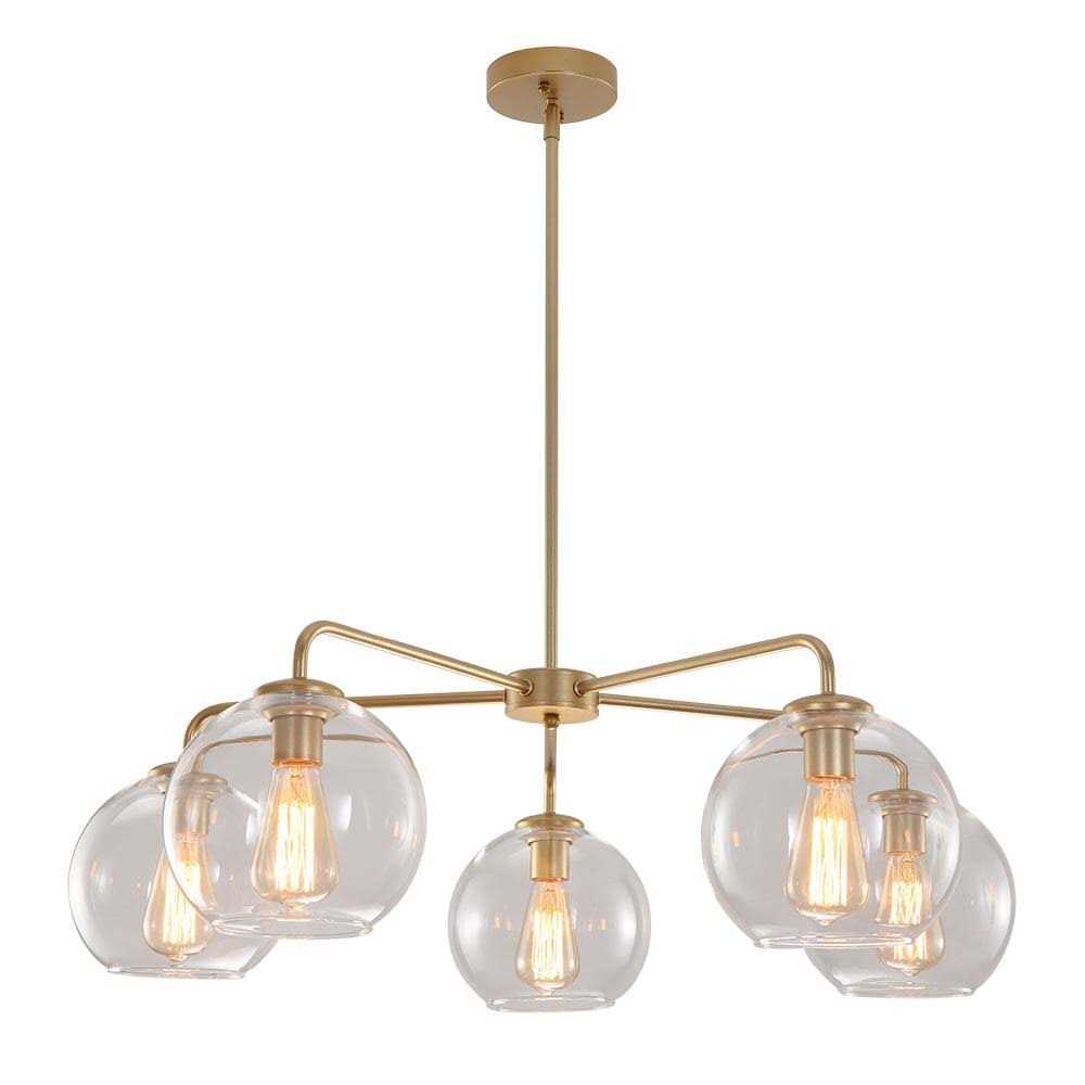 Mid-century 5-light Glass Globe Bubble Round Chandelier