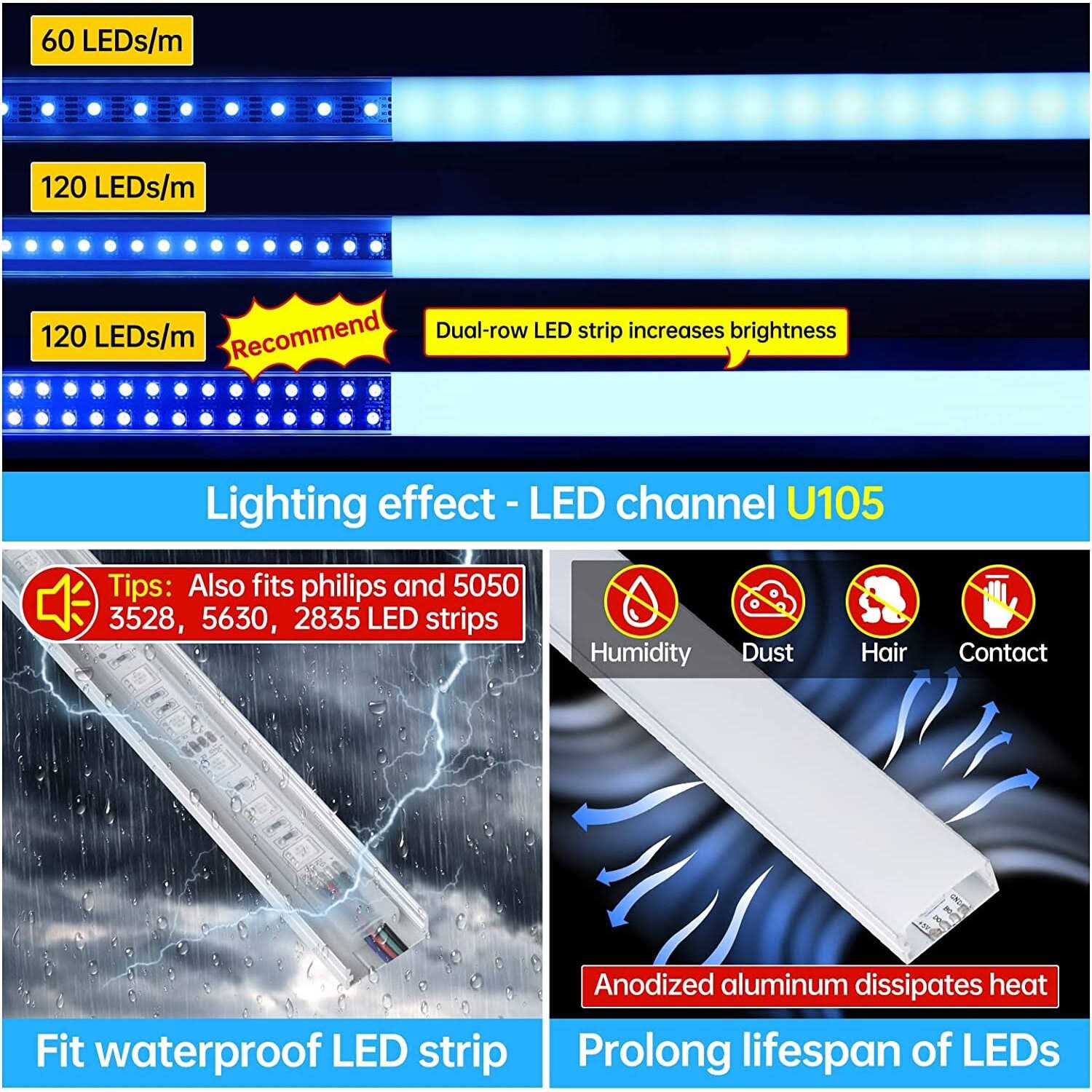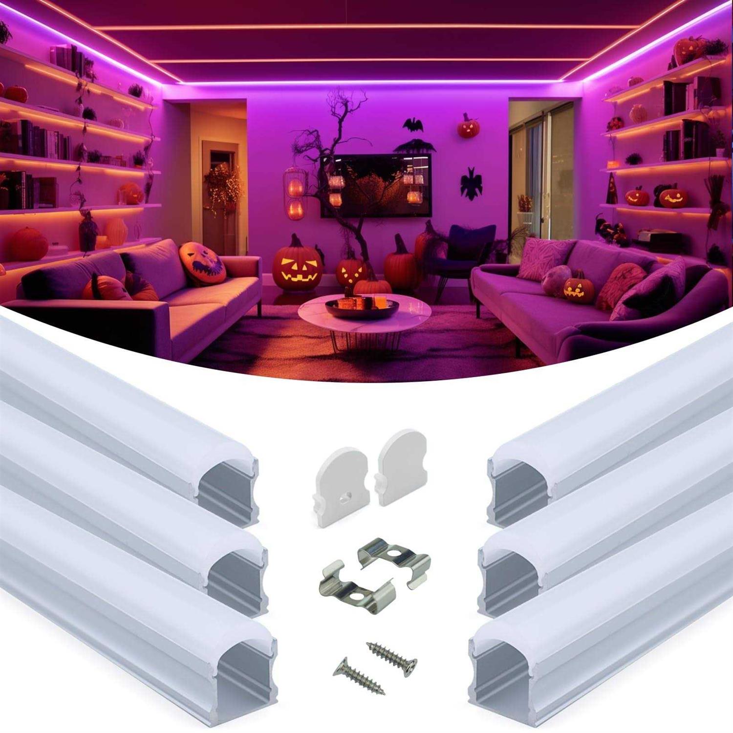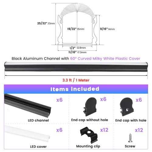 Muzata 3.3ft U Shape Spotless LED Aluminum Channel System with 60° Curved Thicker Milky White Neon Effect Cover