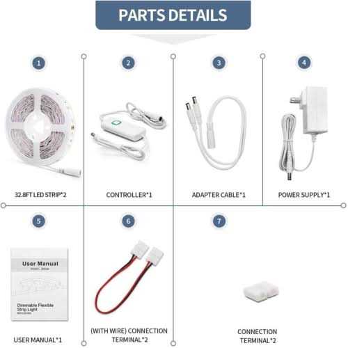 MY BEAUTY LIGHT Led Strip Lights Warm White Dimmable Led Light Strip Flexible Rope Lights Kits with 24v Etl Power Supply