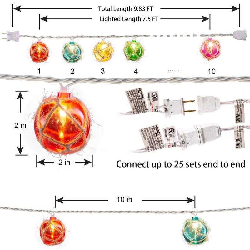 Nautical Fishing Float String Lights, Beach Themed Buoy String Lights Set of 10