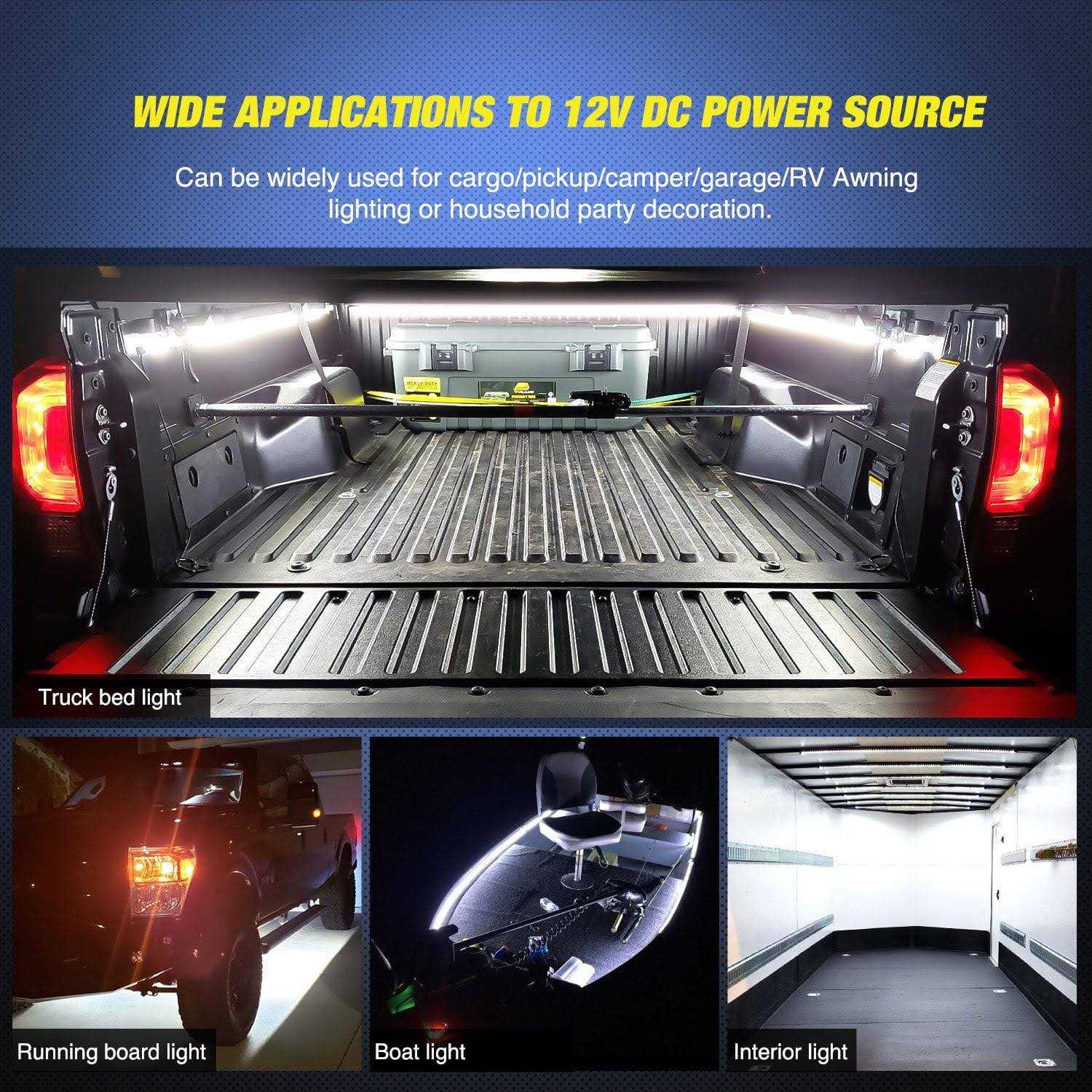 Nilight 3PCS 60 Bed Light Strip 270 LED with On/Off Switch Blade Fuse Splitter Extension Cable for Cargo