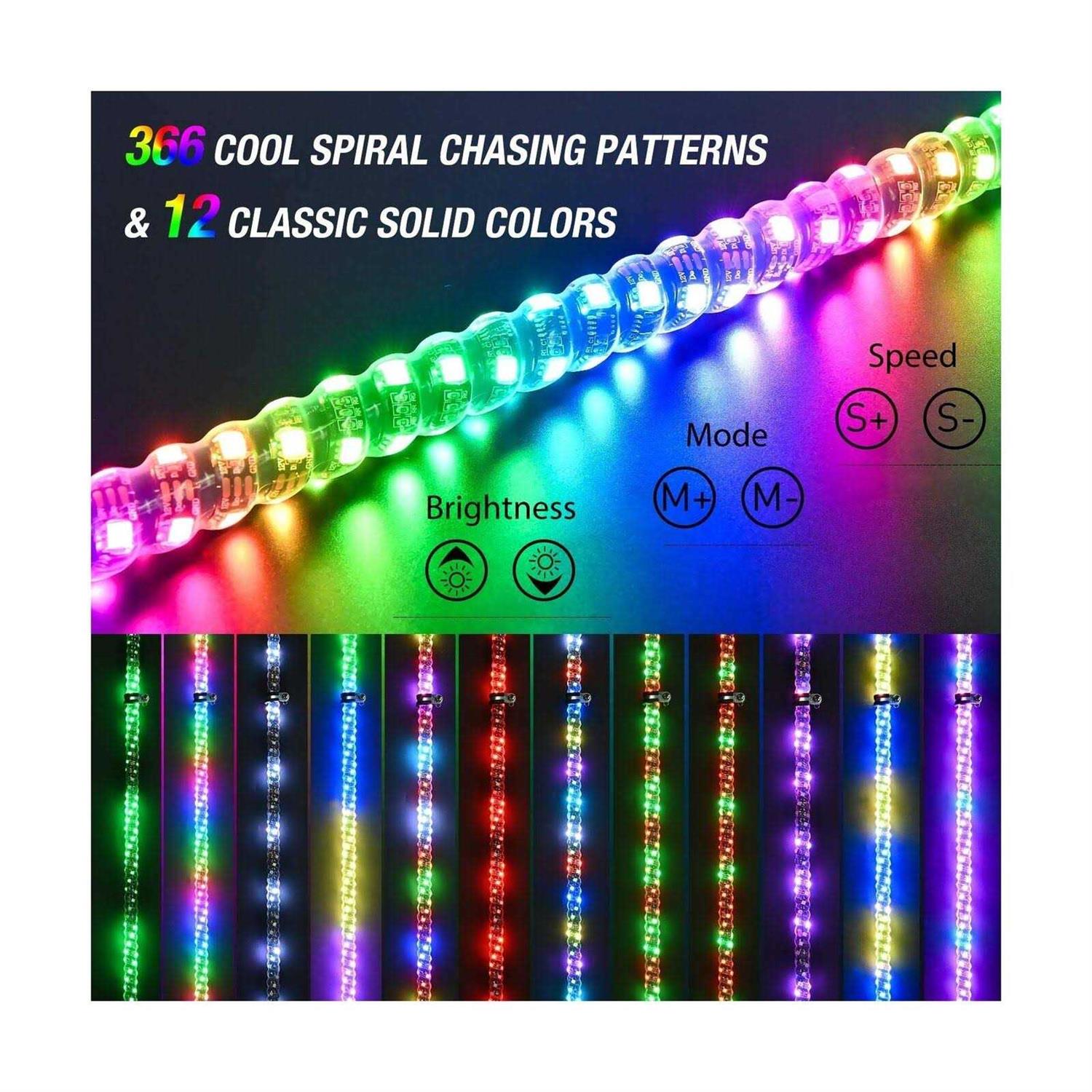 Nilight 2pcs Spiral Rgb Led Whip Light W/Rgb Chasing/Dancing Light Rf Remote Control Lighted Antenna Whips For Can-am Atv Utv Rzr Polaris Dune Bug