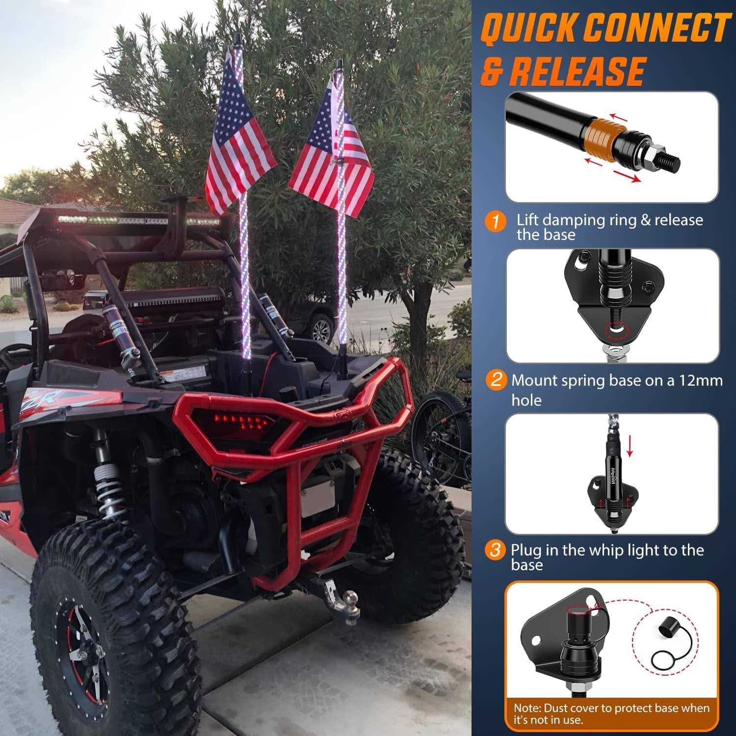 Nilight 2pcs Spiral RGB Led Whip Light with Spring Base Chasing Light RF Remote Control Lighted Antenna Whips for Can-am ATV UTV RZR Polaris