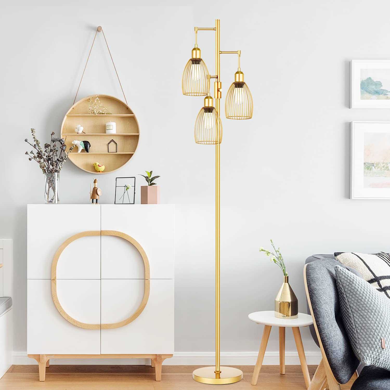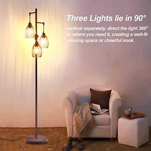 Nintiue Dimmable Floor Lamp 3 x 800LM LED Edison Bulbs Included Farmhouse Industrial Floor Lamp Standing Tree Lamp with Elegant Teardrop Cage Heads Tall