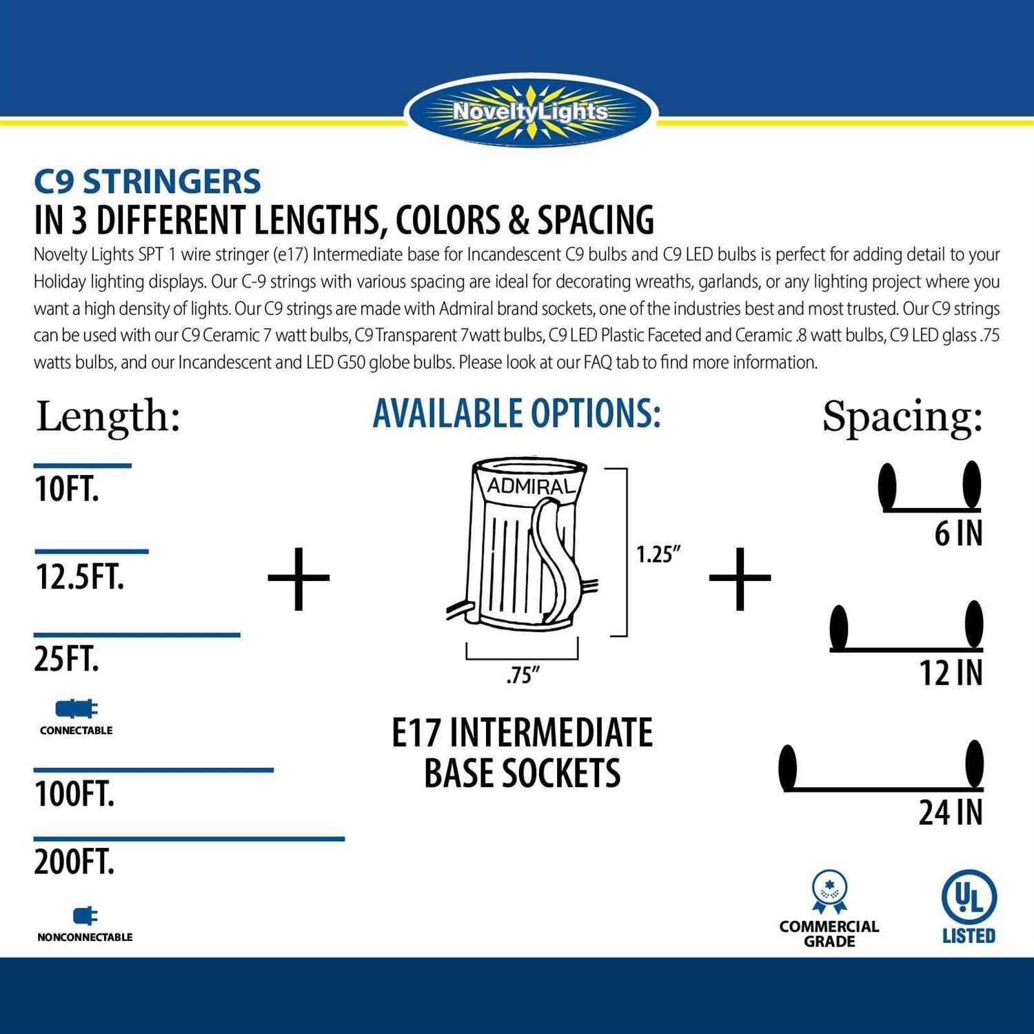 Novelty Lights 12.5 Foot String Light Set Indoor/Outdoor Stringer Set for Christmas