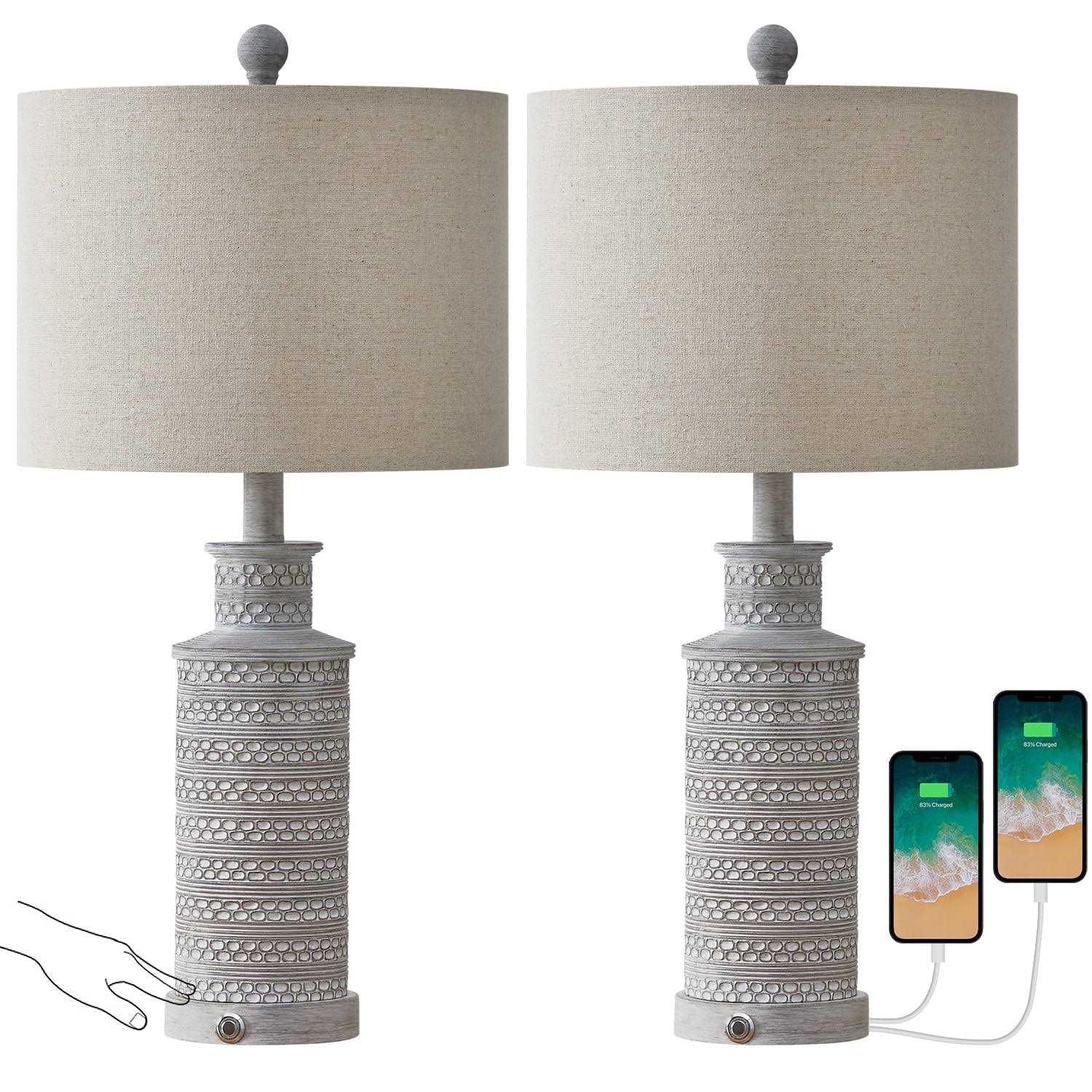 Oneach 3 Way Dimmable Table Lamp Set of 2 with USB Ports for Bedroom Living Room 24.5 inch Vintage Rustic Farmhouse Touch Control Nightstand Bedside