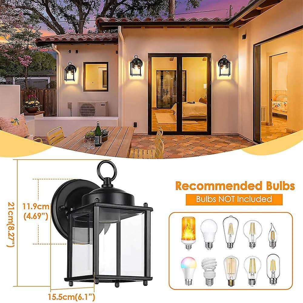 Outdoor Wall Lantern, Exterior Waterproof Wall Sconce Light Fixtures, Black Front Door Wall Lighting with Clear Beveled Glass Shade, Anti-rust E26 Soc