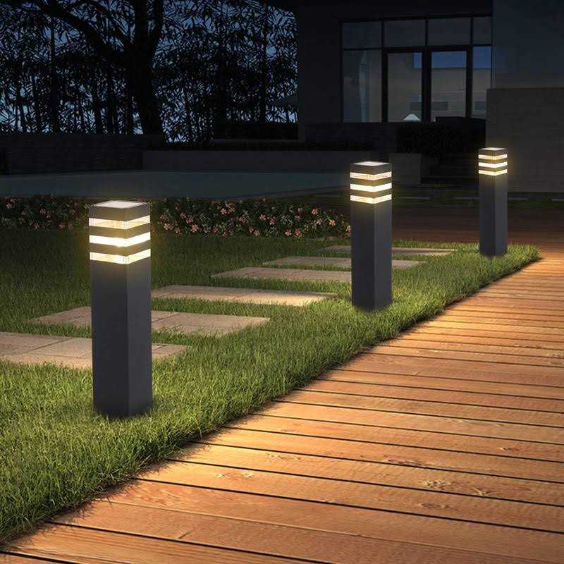 Outdoor Landscape Path Lights Black E26 Patio Porch Exterior Floor Lamp IP65 Waterproof Bollard Light Lawn Lamps Die-Casted Aluminum Square Modern