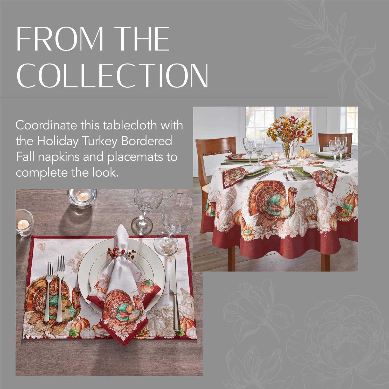 Elrene Home Fashions Holiday Turkey Bordered Fall Tablecloth