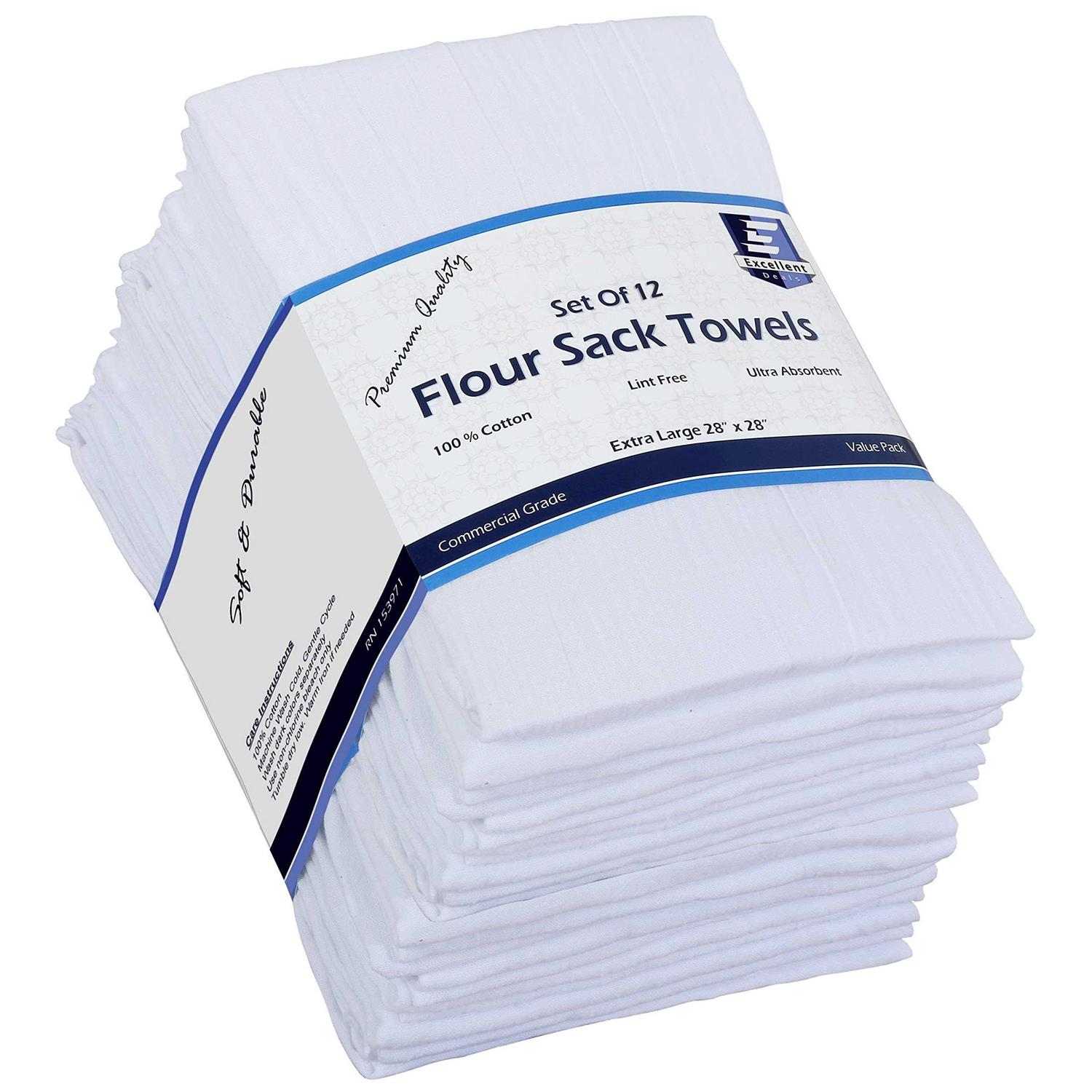 Excellent Deals Flour Sack Kitchen Towels 100% Cotton,28×28 Inch Cloth Napkin