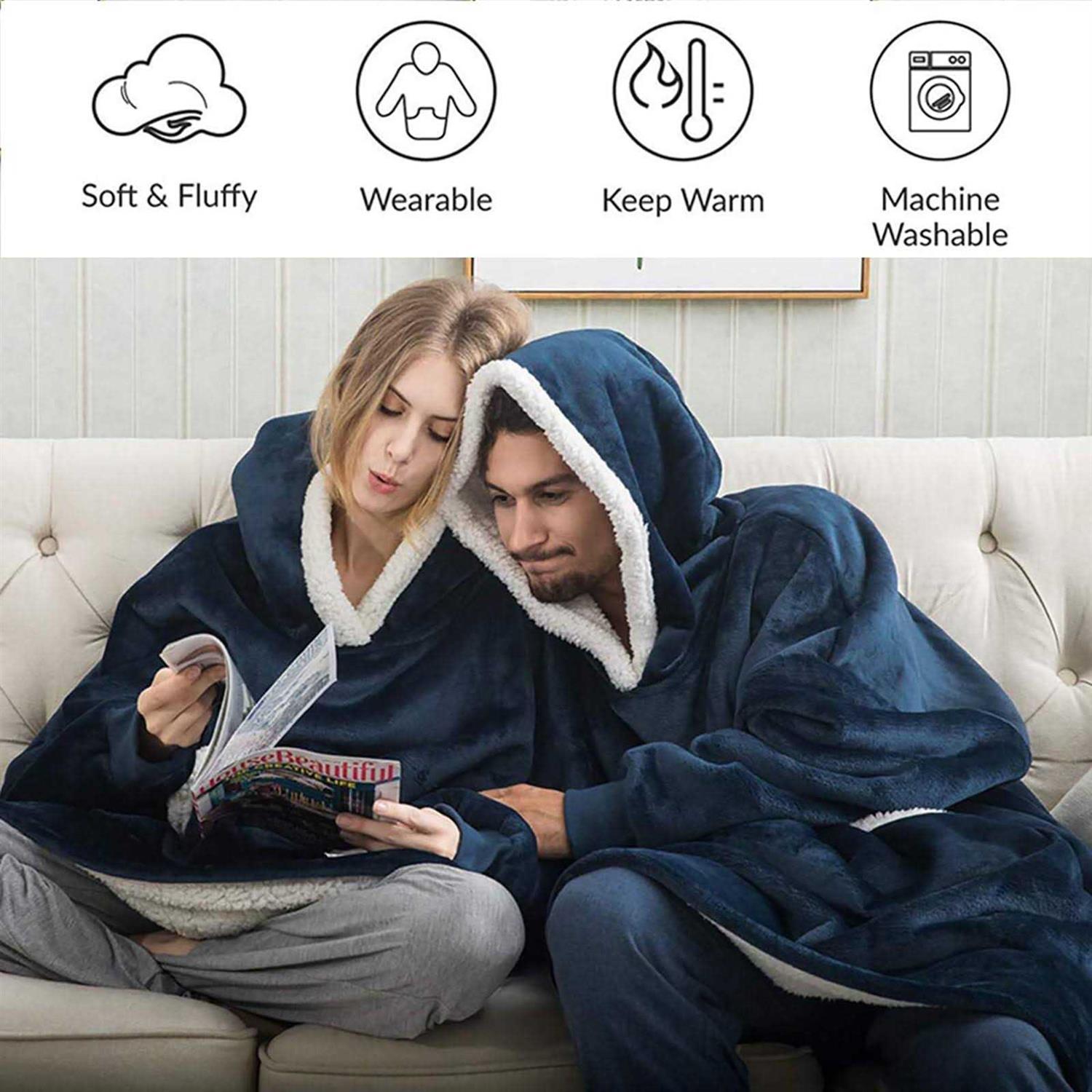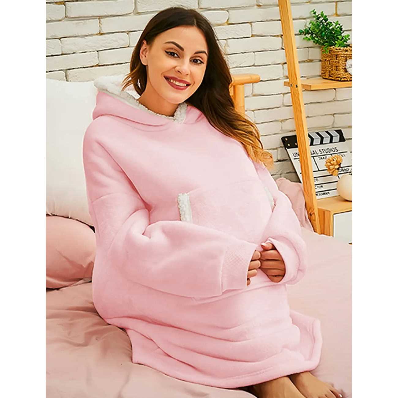 Fantaslook Wearable Blanket Hoodie for Women and Men Oversized Sherpa Fleece Blanket Sweatshirt with Sleeves & Pocket