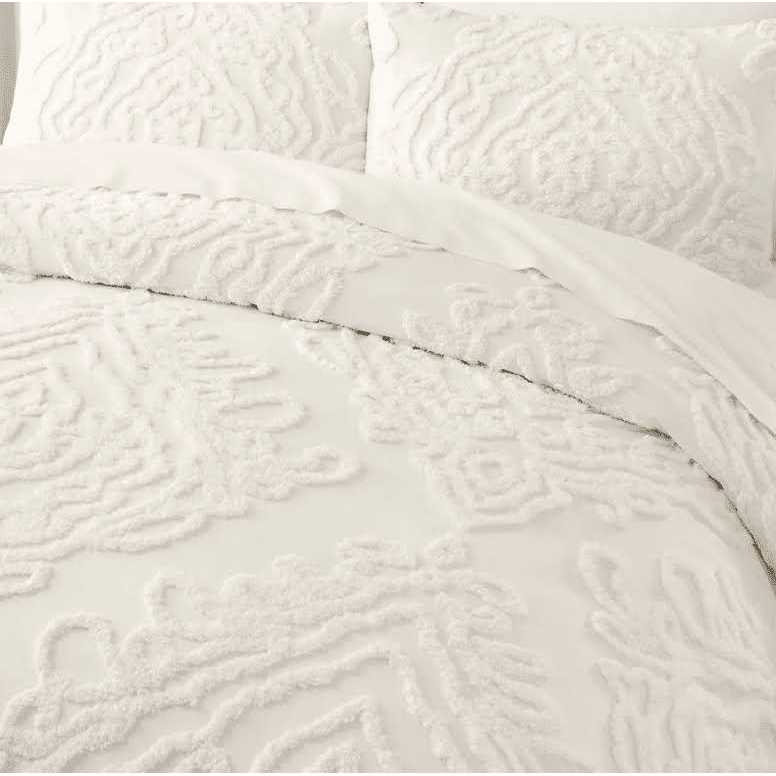Home Decorators Collection Fairhaven 3-Piece Ivory Textured Medallion Cotton King Duvet Cover Set