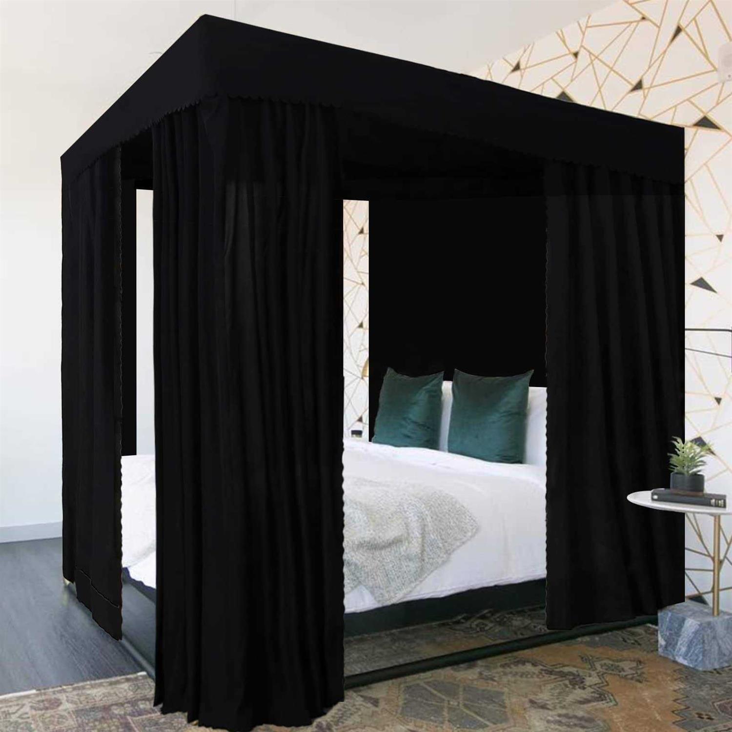 Kmhesvi Black Canopy Bed Curtains 4 Corner Post Bed Curtains Canopy Queen Bed Canopy Curtains for Adults Girls Bedroom Decoration