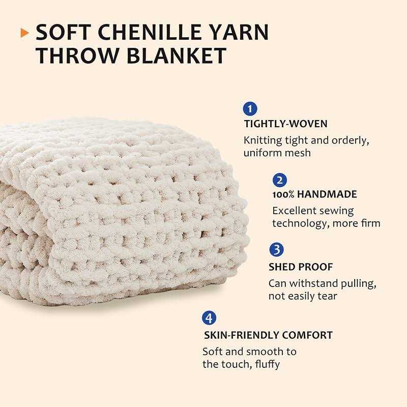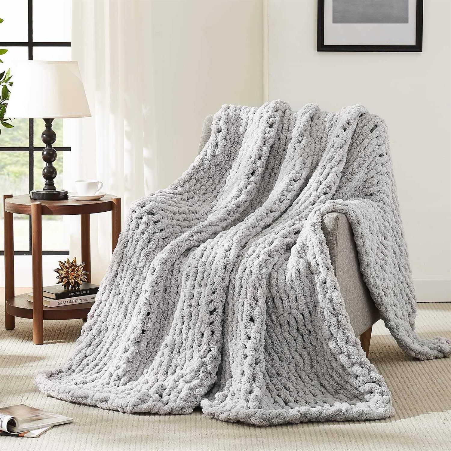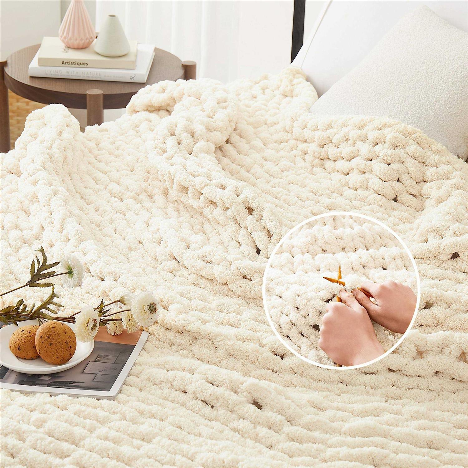 L’AGRATY Chunky Knit Blanket Throw,Soft Chenille Yarn Throw Blanket Handmade Thick Cable Knit Crochet Blanket,Large Knit Blanket Chunky Yarn