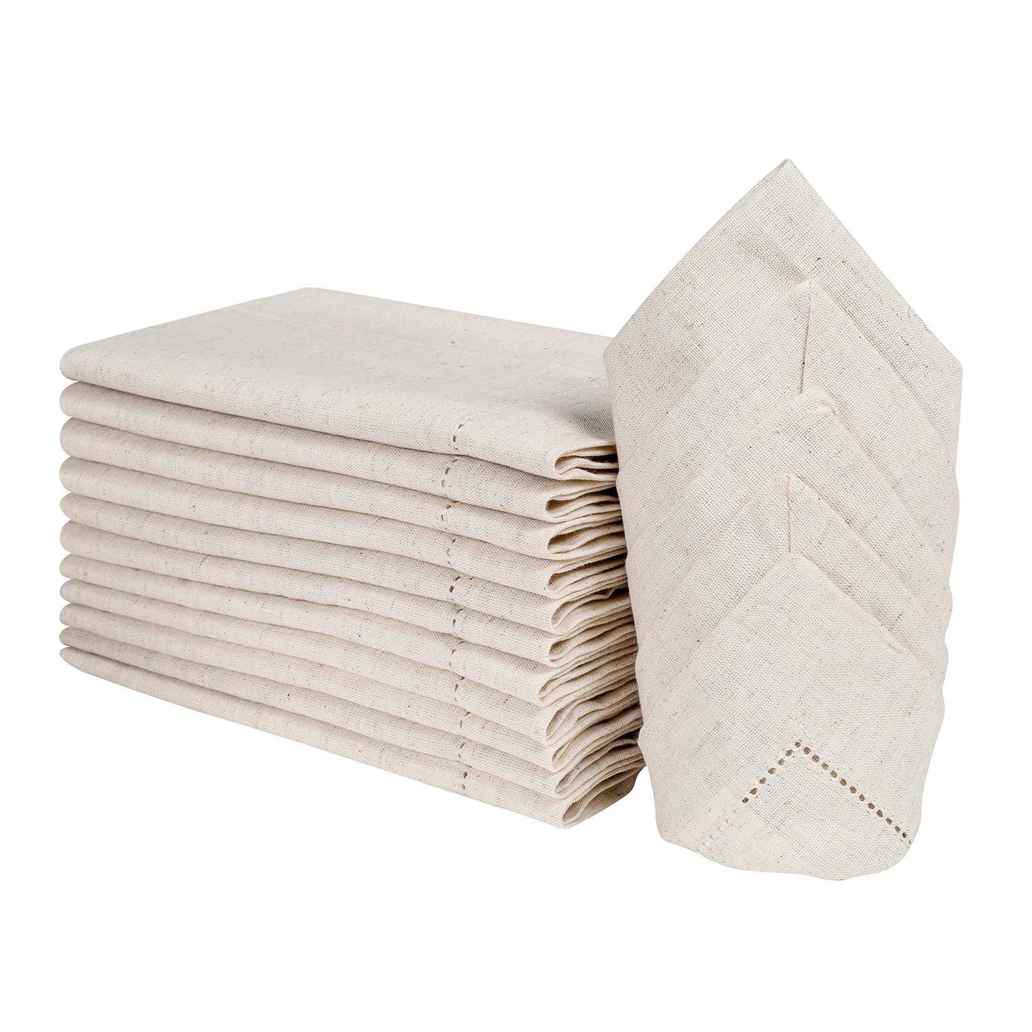 light & pro Linen Napkins,Flax Linen Napkins Hemstitched Linen Napkins,Cloth Napkins,Dinner Napkins Cloth,Cloth Napkins Set of 12,Linen Nap