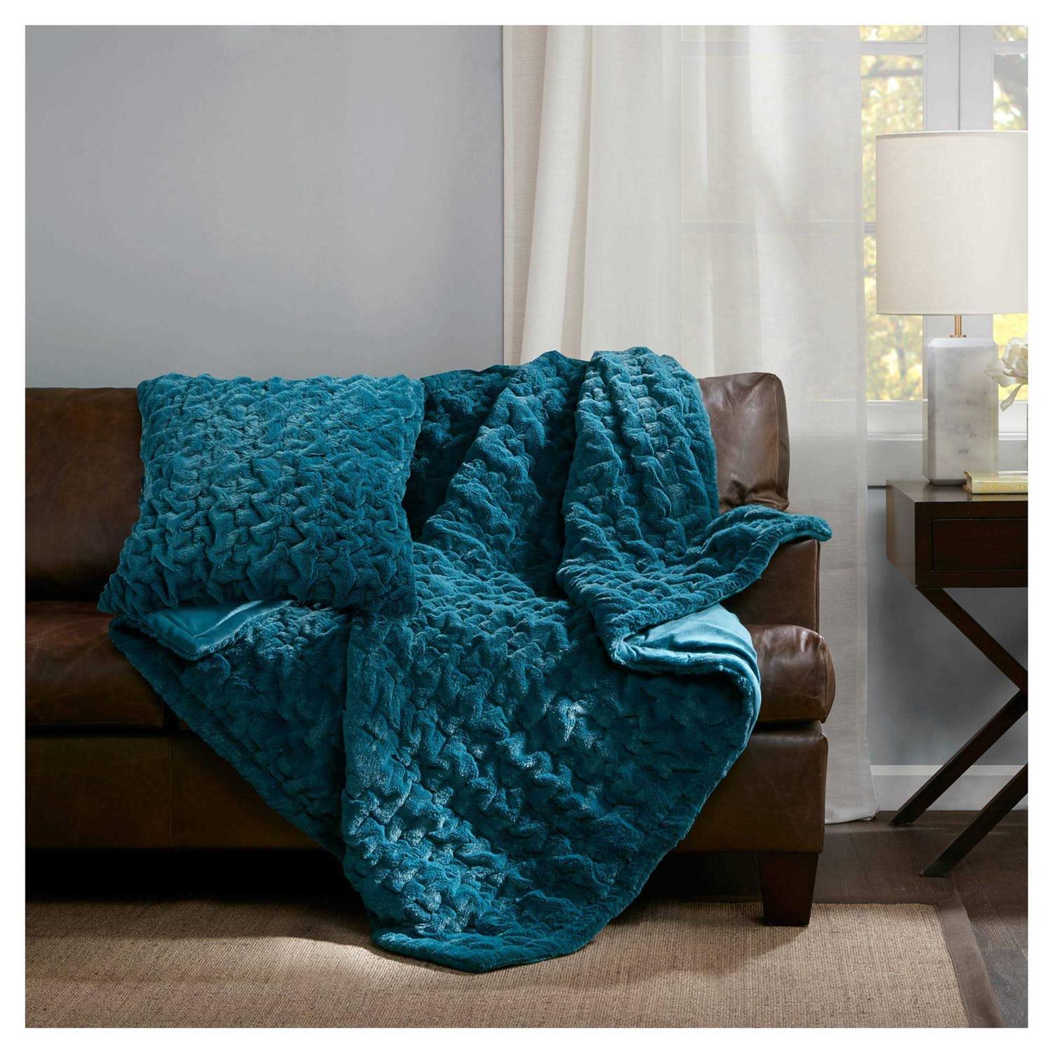 Madison Park Ruched Fur Throw
