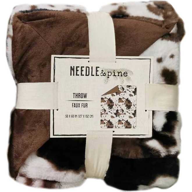 Needle & Pine 50 in x 60 in White/Brown Faux Rabbit Fur Throw Blanket
