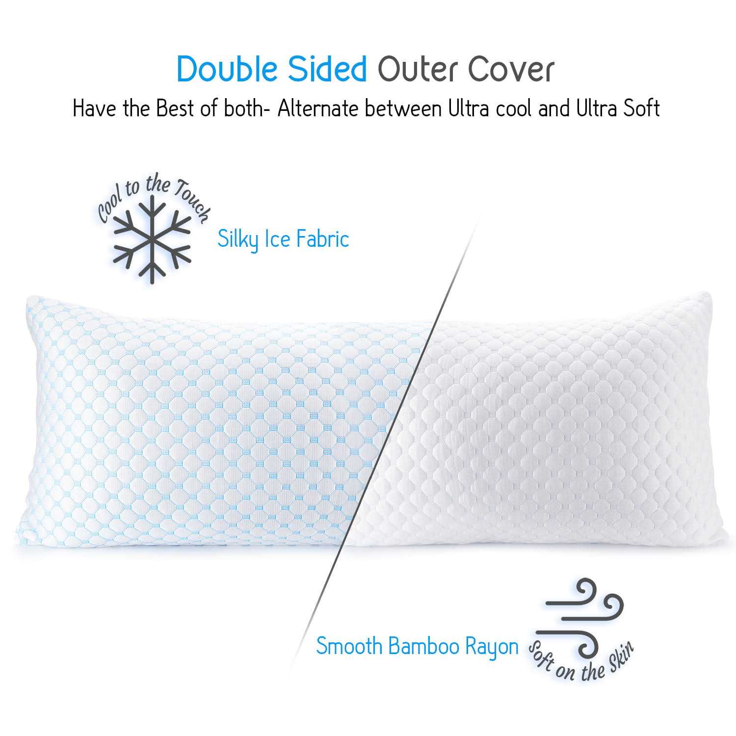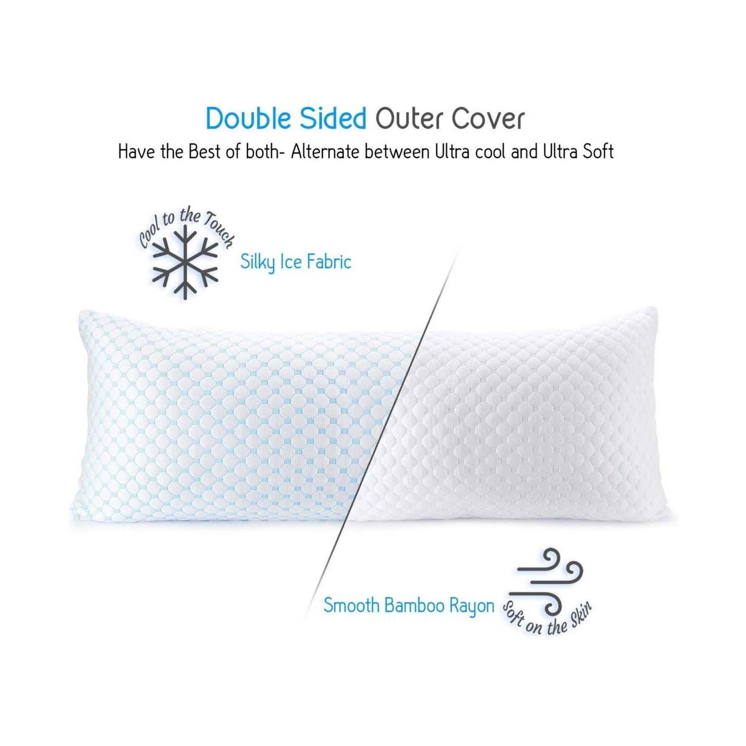 Nestl Coolest Pillow Heat and Moisture Reducing Ice Silk and Gel Infused Memory Foam Pillow. Adjustable, Washable, Breathable – King – 18 x 36 inch –