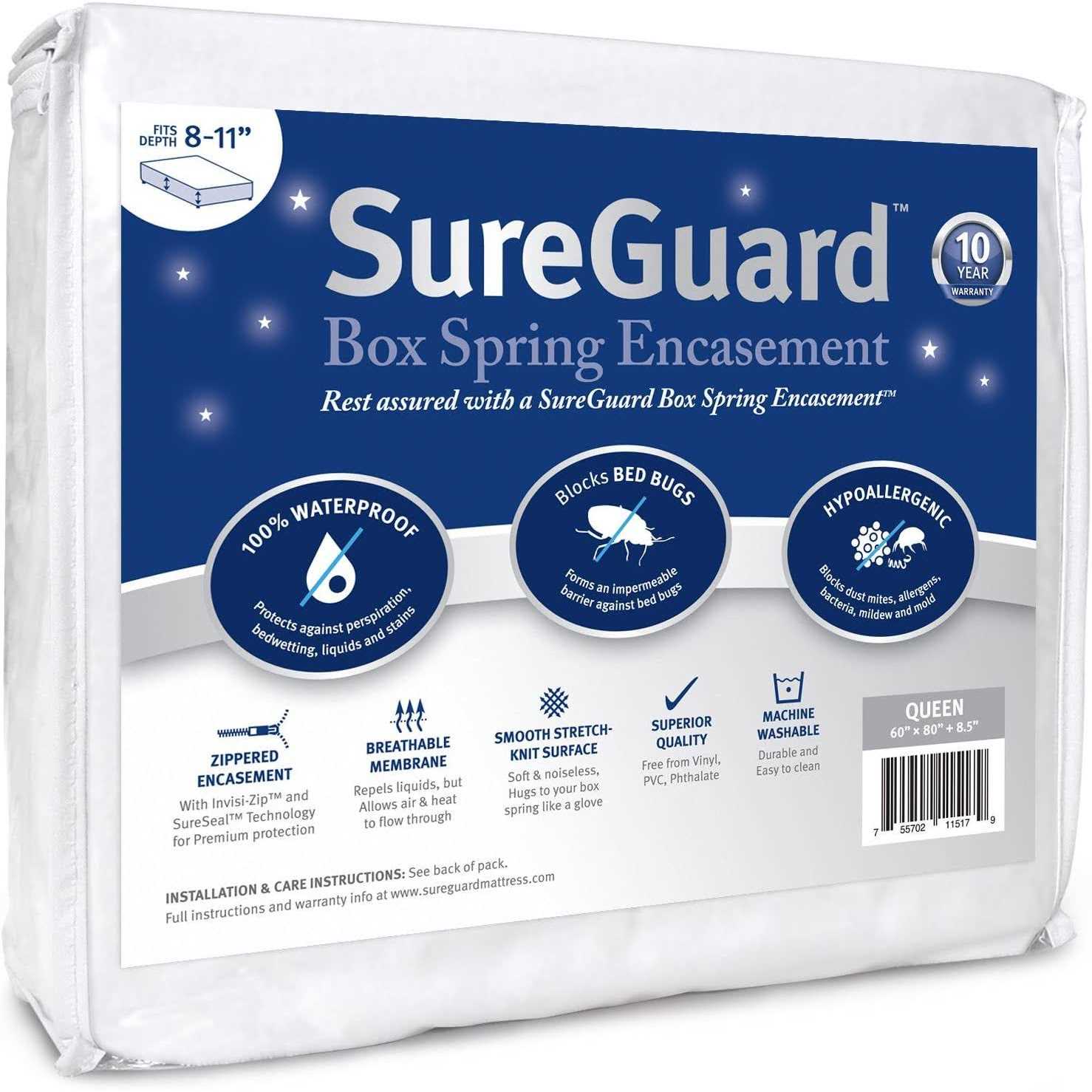 Queen Size Sureguard Box Spring Encasement 100% Waterproof