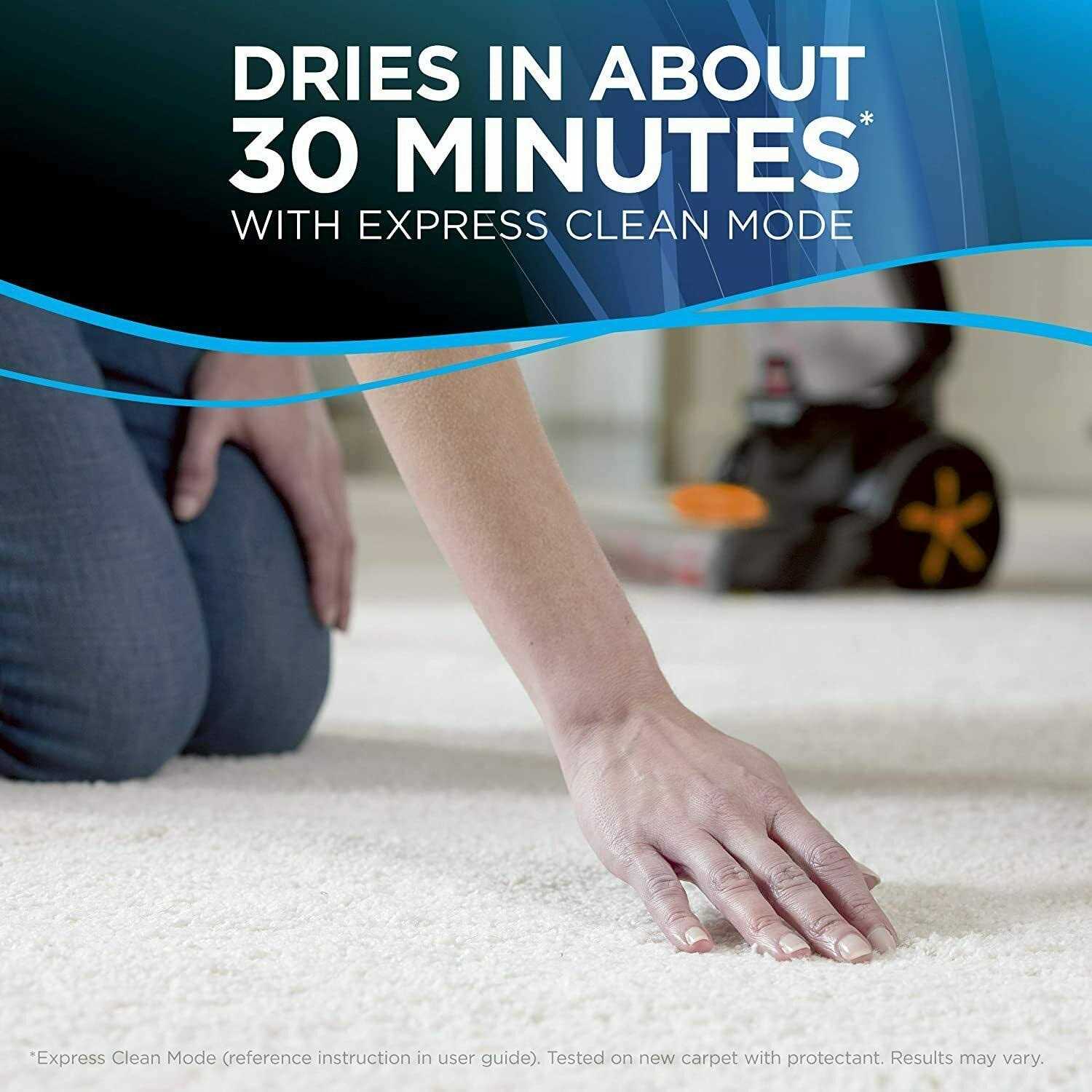 Get professional results with the Bissel Inc ProHeat 2X Revolution Pet Carpet Cleaner!. Outcleans the leading rental machine and is half the weight for ease of use. Low profile cleans and maneuvers under and around furniture. Dual DirtLifter PowerBrushes and powerful suction combined with Bissel Pro Max Clean + Protect formula loosen, lift and remove embedded dirt and stains. Features 12 rows of cleaning bristles. EdgeSweep brushes deep clean against baseboards and around furniture. Heatwave Technology helps maintain water temperature throughout the cleaning process. Express Clean Mode dries in about 30 minutes. Use with Deep Clean + Antibacterial formula to eliminate more than 90% of odor-causing bacteria (sold separately). Includes Pet Stain Tool and 3″ Tough Stain Tool to remove pet messes on stairs, upholstery and hard-to-reach areas. Plastic construction.