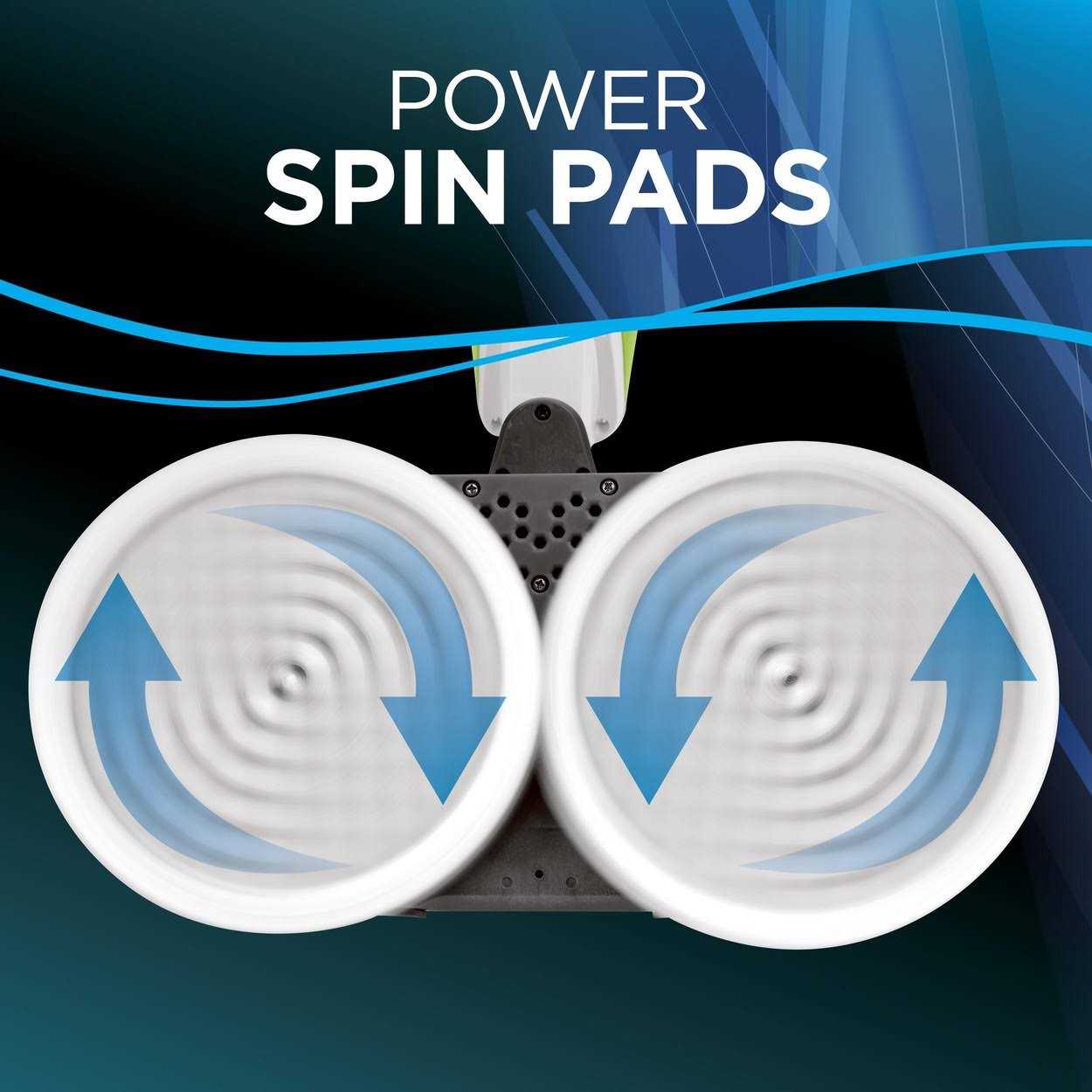 The BISSELL SpinWave Cordless hard floor spin mop puts the fun back in cleaning with spinning mop pads that glide across sealed hard floors, making it easy to clean tough, sticky messes. The mop pads rotate and scrub the floors for you while remaining gentle and safe on sealed hard floors like tile, vinyl, linoleum, sealed hardwood floors and more. Our SpinWave Cordless has an 18V lithium-ion battery that provides up to 20 minutes of cordless cleaning power, while the on-demand spray controls give you the power to decide how much cleaning solution you put on your floors. When you are done cleaning, just toss the washable mop pads in the wash so they are ready to go when you need them next. Enjoy reduced cleaning effort with this powerful hard floor cleaner that scrubs floors for you 18V lithium-ion battery gives you up to 20 minutes of cordless cleaning power On-demand spray trigger allows you to control how much solution goes onto your floors Safely and gently cleans sealed hard floors Lightweight, 11-pound hard floor cleaner is easy to carry from room to room with an integrated carry handle Includes a trial size formula, microfiber mop pads and a storage tray that helps align washable mop pads on the foot of this machine and gives you a place to store your machine after use Comes with a trial size formula and microfiber mop pads | Bissell Spinwave Cordless Hard Floor Spin Mopin Titanium with Electric Blue Accents | Nebraska Furniture Mart