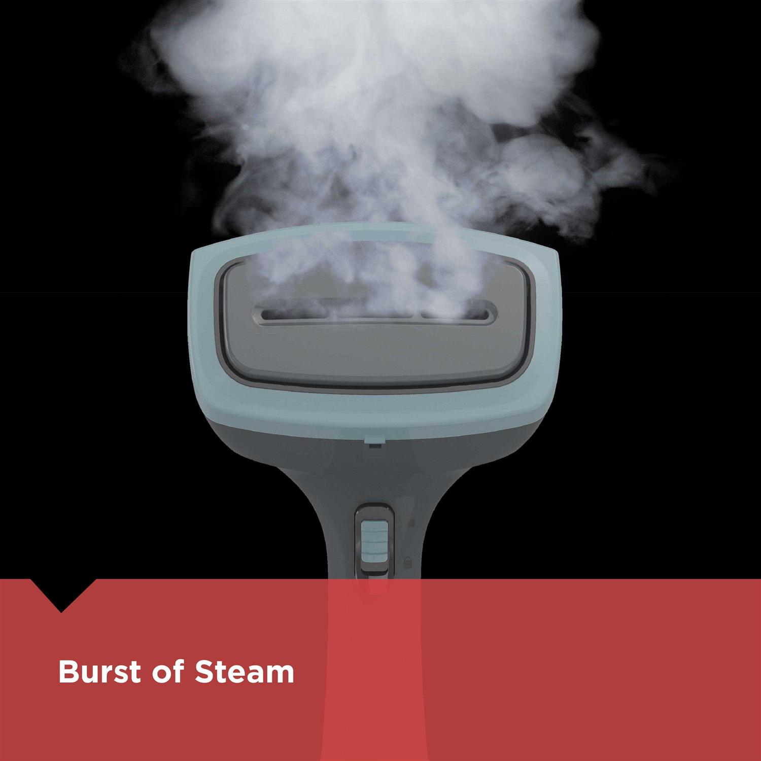 Erase wrinkles and freshen up fabric with this Black & Decker advanced handheld steamer. A continuous steam switch and a steam burst trigger make for easy operation, while the auto shutoff function prevents accidents. This Black & Decker advanced handheld steamer features a 15-foot cord for convenient reach and has a compact, lightweight design for effortless use. Handheld steamer Perfect for deodorizing and refreshing hard and soft surfaces, such as bedding, drapes, plush toys, high chair trays, and kids play areas. Burst of steam Hit a steam trigger to generate a powerful burst of steam that blasts away wrinkles. Continuous steam Lock the steam trigger into place to release a continuous flow of steam to melt wrinkles away. Auto shutoff After 15 minutes of inactivity, the steamer will automatically power down. 15′ long cord Gives you plenty of reach for steaming drapes and bedding. Removable water tank Enables easy water refilling. Attachments included Use the included attachments for special jobs, such as upholstery, delicate fabrics, and lint removal.