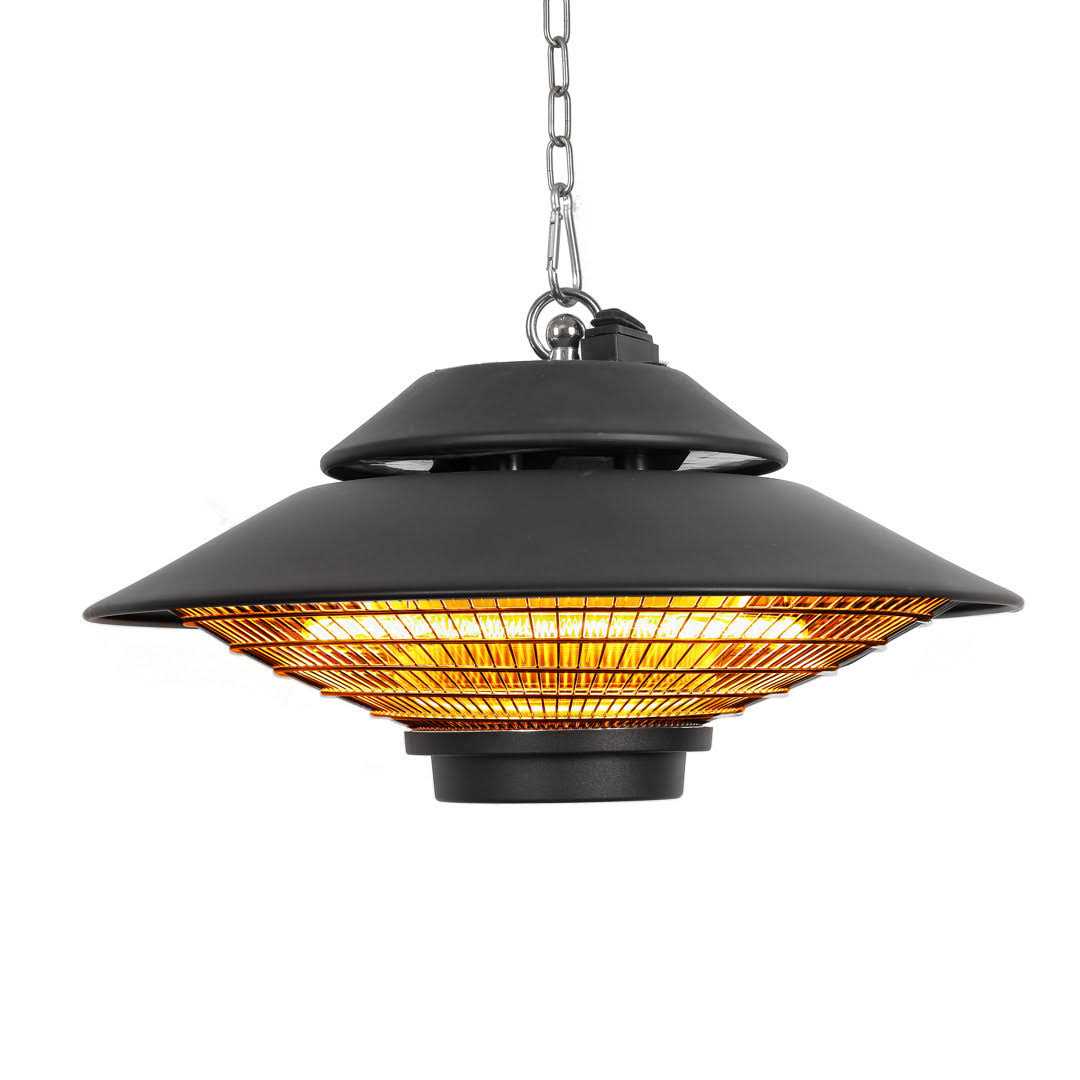 Patio Heaters by BLACK+DECKER. Details:This BLACK+DECKER wall mounted patio heater is perfect for wintertime get-togethers for you and your guests. Pull chain operated, our outstanding patio electric heater (16.73” x 16.73” x 9.84”) has one heat setting of 1500W. Installing your new outdoor mounted heater (4.96 lbs.) on your patio ceiling has never been easier thanks to its sturdy hanging chain. Patio heater wall comes with cool touch housing and one carbon tube heating element for optimal performance. Power cord length of 6 ft., 120V/60Hz, remote control operated, 12.5 amps.