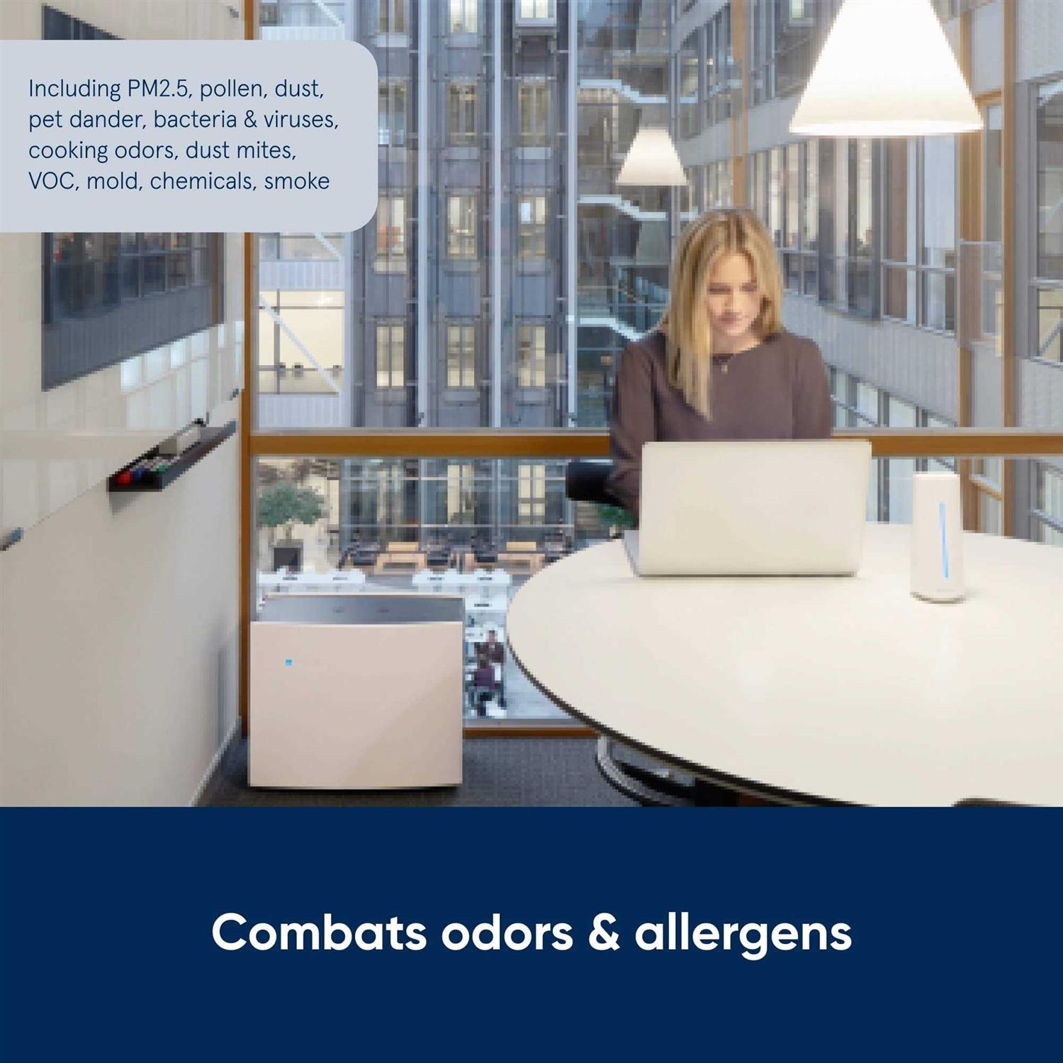 True HEPA performance, enabled by HEPASilent Technology with particle filtration and electrostatic charge, captures 99.97% of airborne pollutants; allergens, mold, dust, pet dander, smoke particles and pollen German Engineered fans providing quiet yet power operation for peak performance and maximum air flow Professional and sleek Swedigh design to fit into any office, workspace, business, or home. Perfect for use in doctors office, waiting room, lobby, or lab. Revolutionary combination of advanced filter media and an encapsulated particle-charging chamber delivers more clean air, in less time than other air cleaning systems For small to medium work environments between 300 sq. ft. and 400 sq. ft., AHAM rated at 390 sq. ft. Certified by Energy Star and CARB Size:Blueair Pro M – 390 Sq. Ft. Breathing clean air has a significantly positive effect on well-being. The Blueair Pro will protect you and your staff from the negative consequences of indoor air pollution, increase your energy levels, promote a clearer mental state and improve your circulation. The Blueair Pro M with the Particle Filter is the optimal choice for removing particle pollutants such as bacteria, viruses, pet dander, dust and pollen. Or use the Blueair Pro M with our Blueair SmokeStop Filter to get rid of gaseous pollutants, for example Volatile Organic Compounds (VOCs such as formaldehyde), tobacco smoke and particles. Create an environment where people can breathe healthier air – whether working alone or with others.