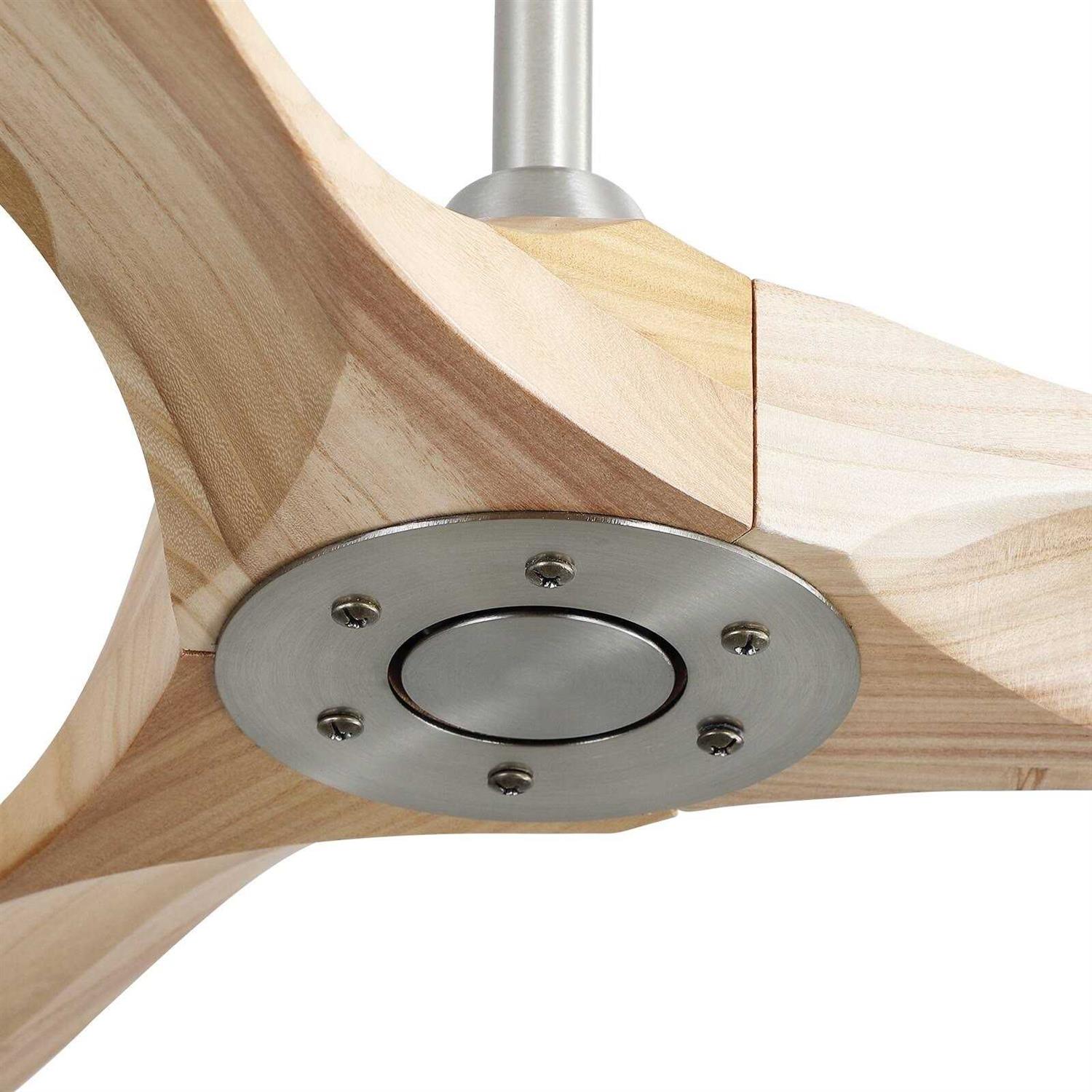60 Inch ceiling fan without light with the minimalist look and slightly curved blades will match your different decor styles, modern, farmhouse and industrial, and so on. The Blades are made from solid wood. This modern ceiling fan can provide great air movement. With a 35W DC reversible motor, this fan has a super quiet performance, no need to endure the noise while saving energy both in the summers and winters. Easy to control the fan by remote control.