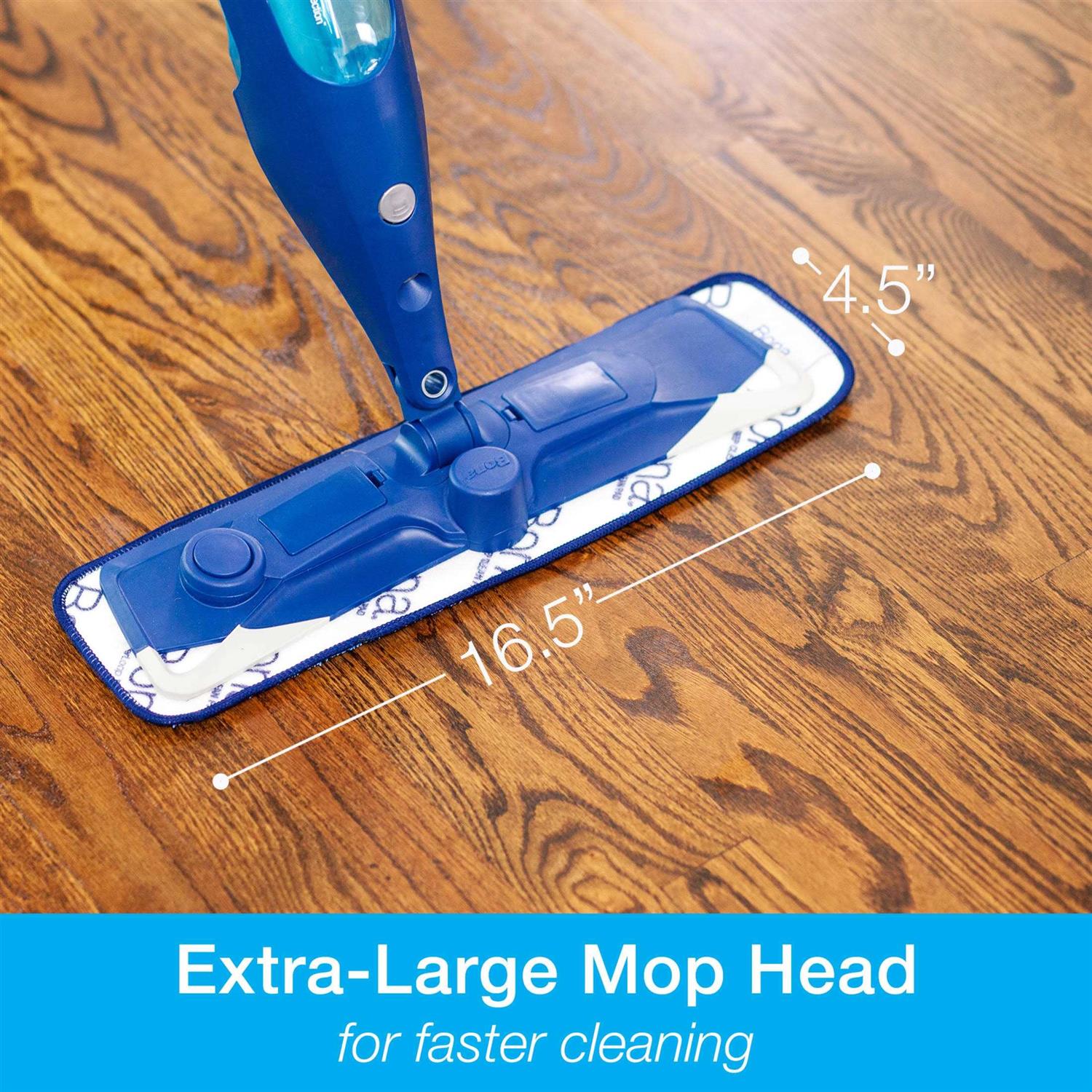 The Bona PowerPlus Premium Motion Spray Mop for Hardwood Floors is an all-in-one battery powered solution to deep clean wood floors. Stuck on messes are no match for this premium spray mop, equipped with a vibrating mop head that delivers sonic action to loosen dirt and debris. Includes Bona Power Plus oxygenated residue-free deep cleaner in a refillable cartridge and a deep cleaning washable microfiber pad. To refill, remove the cartridge with a push of a button. The extra-large mop head delivers quick and effective cleaning, and the flexible rubber corners protect baseboards and furniture from dings and scratches. Soft microfiber won’t scratch your floor and the Bona Power Plus Microfiber Deep Clean Pad features patented Power Loop technology that gently breaks apart and loosens tough dirt build-up, while the dual-zone microfiber traps and locks dirt away.