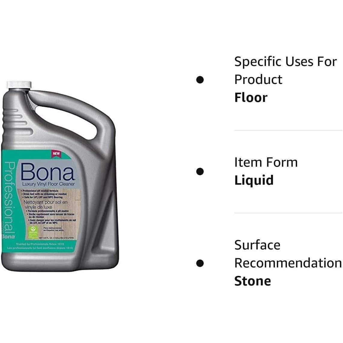 A professional strength waterborne, environmentally responsible cleaner specifically formulated to clean all luxury vinyl tile and planks without dulling the finish or leaving any residue. This pH neutral formula is specifically designed to clean your Luxury Vinyl floors. It expands the Bona Professional Series assortment into the latest flooring trend of Luxury Vinyl.