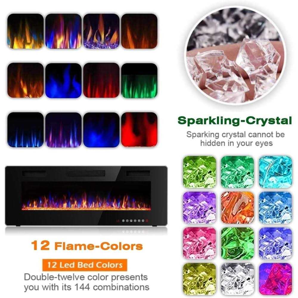 Upgrade your home with the Bossin ultra-thin and silent linear electric fireplace. With adjustable LED flame colors and your choice of stone pebbles or acrylic crystals, it delivers modern style and comfort to any living space. This electric fireplace is easy to install and can be mounted on the wall, recessed, or semi-recessed in a 2′ X 6′ stud wall. The 750W and 1500W modes offer both warmth and energy savings for up to 400 square feet. The full-spectrum LED colors provide a unique ember bed display, with 12 flame colors, 5 flame speeds, and 12 ember bed color lighting options. The remote and touch screen make it easy to control every function, such as the power switch, timer control, independent switch of heating and flame, adjustable flame color and speed, and sleep mode function.