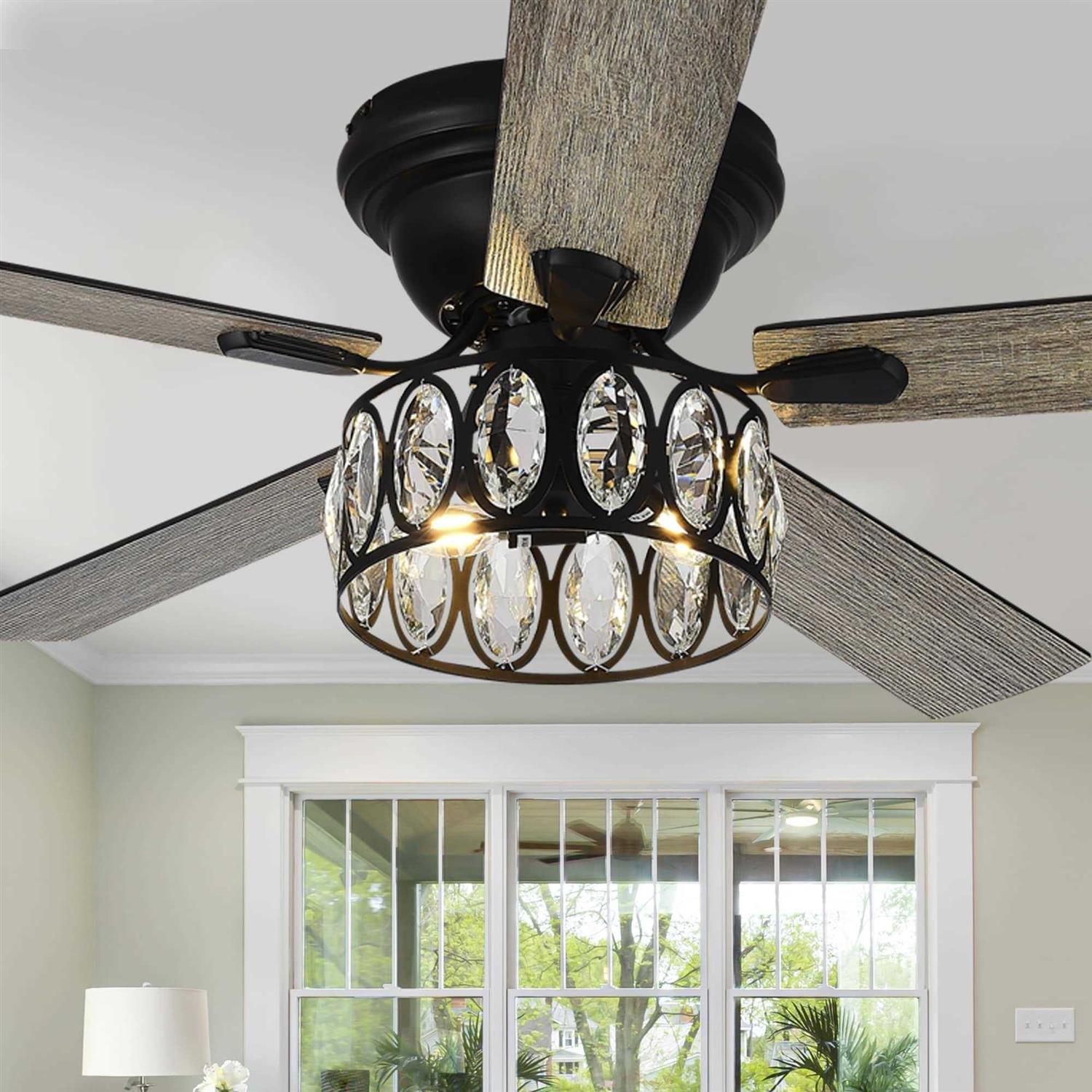 This crystal ceiling fan is a chandelier and ceiling fan combination. in a satin nickel finish, the satin nickel offers both aesthetic beauty and structural stability in the hardware. Gorgeous crystal shade can make your room look more elegant and contemporary. Independent light allows for light and fan working together or separately.